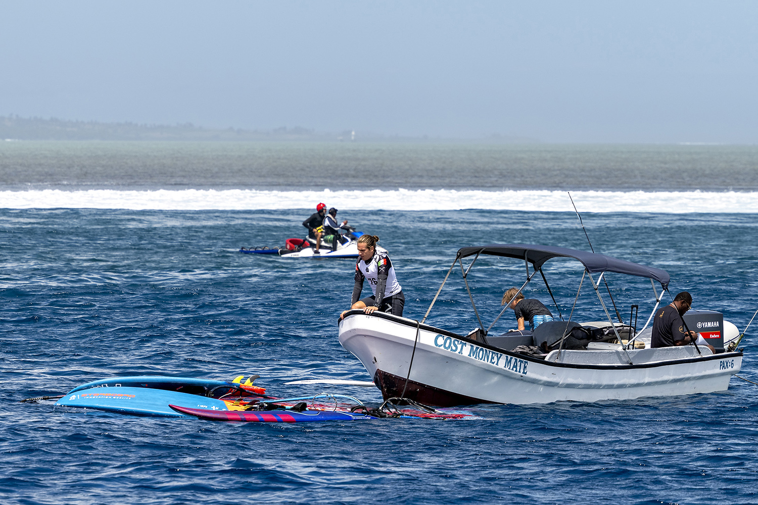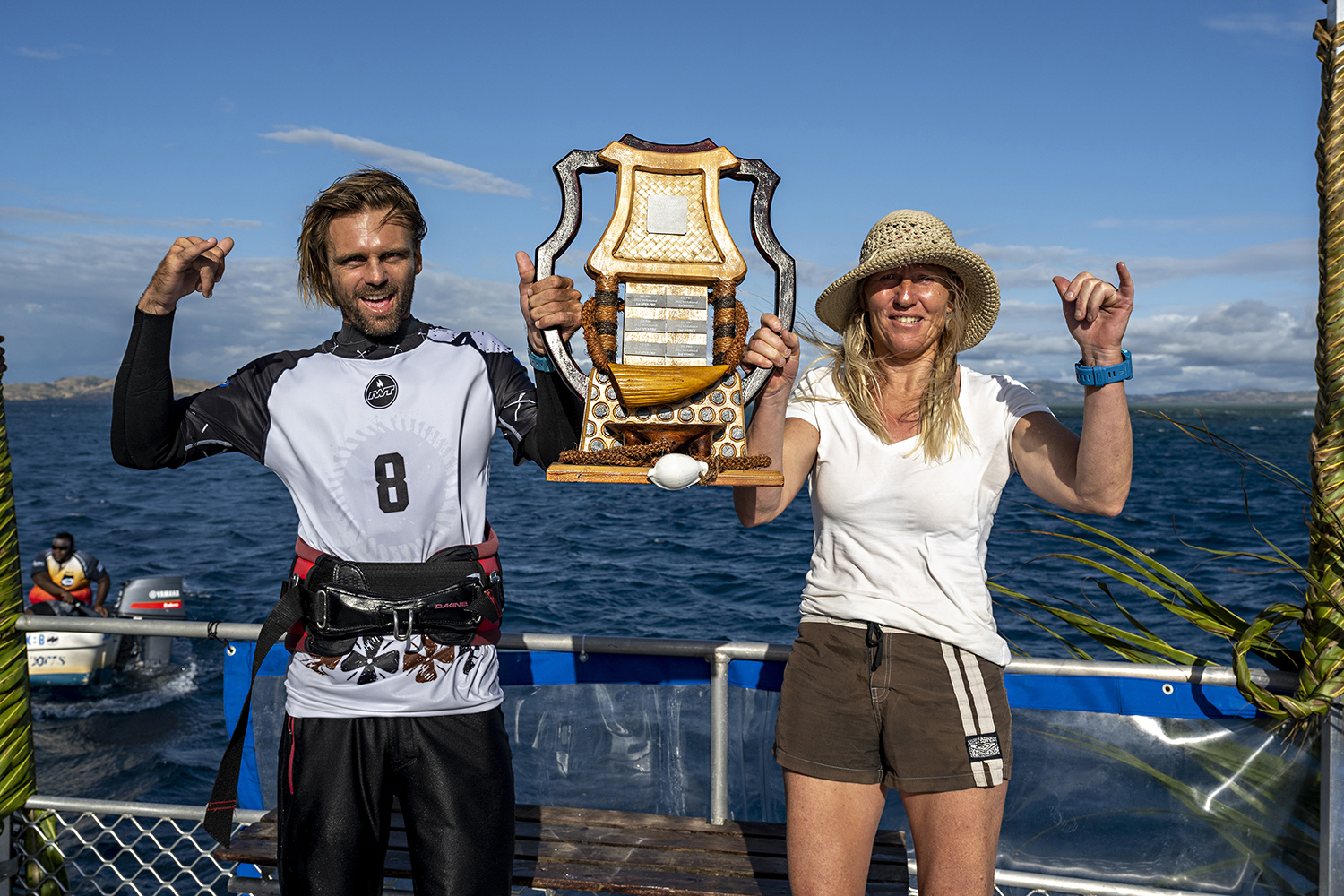 That feeling got stronger each heat and I’d been aiming to push harder and harder each time we sailed. Kate Barker and I had sailed out for our third final, not knowing if it had been cancelled. And of course, the best sets of the day started rolling in consistently. Federico Morisio and Charliboy (Charles Vandemeulebroucke) were out, the flag was up, but Angela and Jessica were missing from the lineup. I knew I’d won, but was confused whether this third heat was still on. Still thinking we might be competing, we were hooting and sharing perfect waves with the boys, watching the boat sail off as the four of us continued our session of a lifetime. I think I was happier just scoring this session than I was even with winning. Kurukuru rewards those who put in the effort!