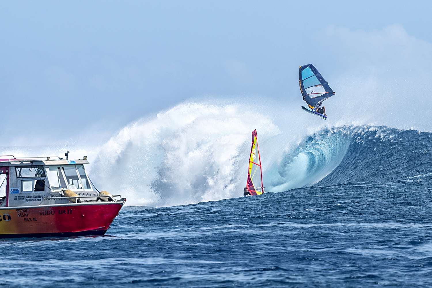 The main source of swell for Fiji comes out of the Tasman Sea and it had been going through one of its worst seasons prior to the event window. Once everyone arrived though, there was a slow building of swell and we were able to sail a few different locations before Cloudbreak truly turned on. And when the waves did come, at first there was no wind, which gave us all an opportunity to surf this legendary wave with some world-class surfers and it was truly a spectacle.
