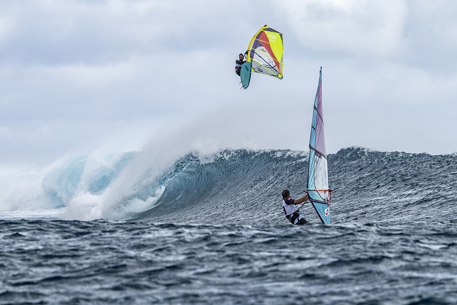 The best-case scenario is to be able to surf a wave before you windsurf it and this was a very important acclimatisation for all the competitors who hadn’t ridden there before. The wave looks like it is coming from the clouds as it descends on the upper part of the reef and my fellow friends and I were able to trade epic rides. The anticipation grew as we saw wind creeping into the forecast and another series of swells incoming.