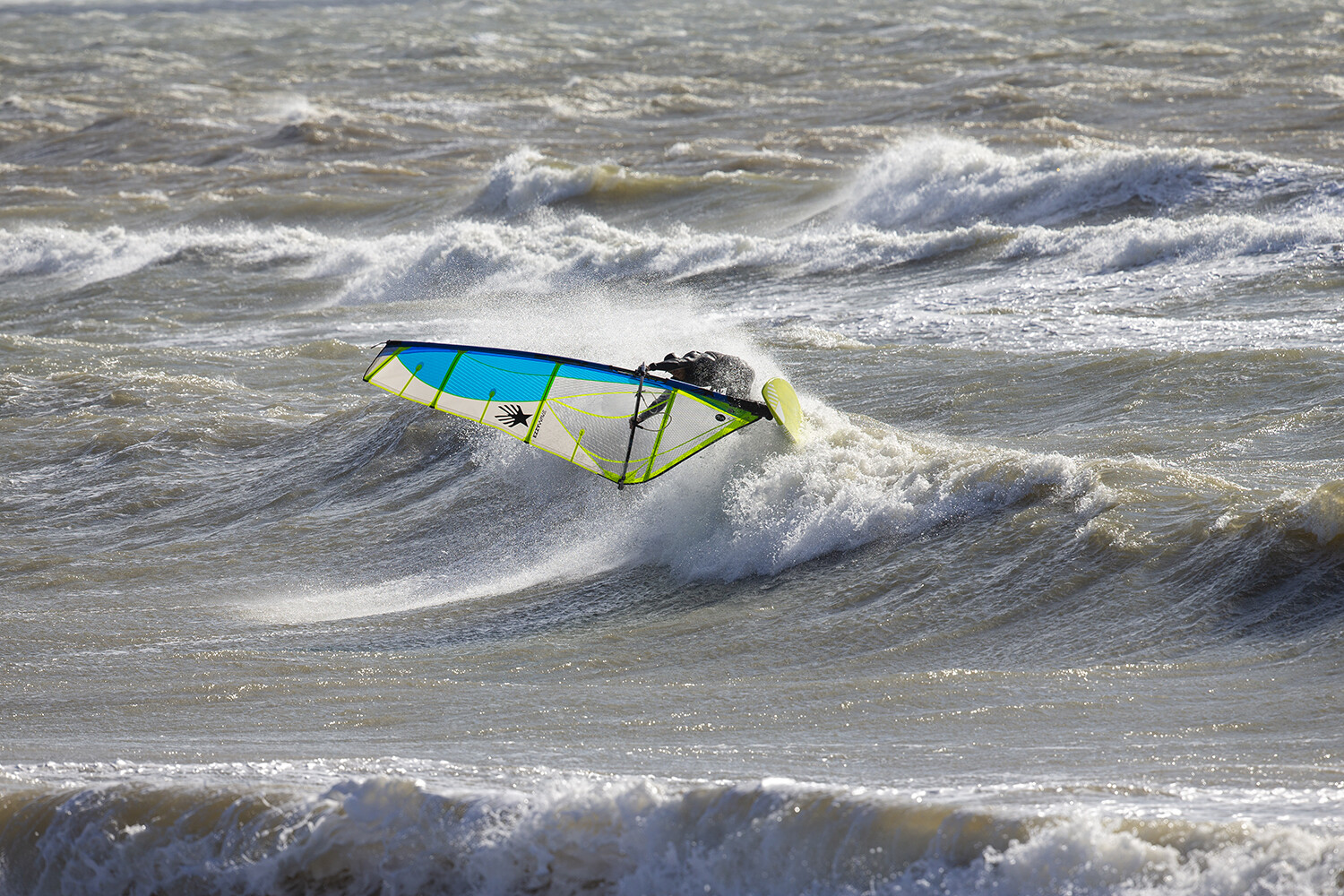 We have quite a regular crew that would typically windsurf Southbourne when it is quite extreme – Andy Chambers, Clyde Waite, Phil Anson, Reuben Shaw, Greg Bowden, Gregg Dunnett, Charles Willard, Nathan Drudge-Coates and Nick Beaney are all regulars. There is also a big community going on just down the beach at Avon which is lovely. It gets busy down there with enthusiastic windsurfers, surfers, kiters and photographers. Roger Bushnell set up a Facebook page for the beach (Avon Beach Surfers) and I think it has really driven a big community, which is fantastic. There are about 5 or 6 local photographers who shoot most of the sessions and post pics on the page. As a result, there is normally somebody shooting at the beach when it is windy. So, all in all, Avon is quite a major UK windsurf hotspot. Southbourne less so, but I love it.
