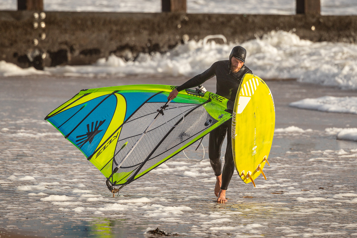 But as it would happen, later that day, I and one of my long time windsurfing chums, Clyde Waite, did go back to Southbourne and we did conquer it together for a good hour of glory as the wind abated, swung cross-shore and the swell became organised. Backs were slapped, songs were sung and ales were drunken in celebration as legs cramped, noses dripped and sand chaffed every joint, crevice and creaking hinge.