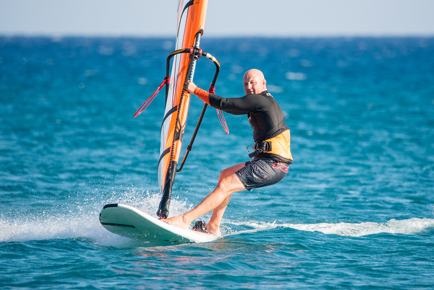 - Really dropping your hips down and out will help you sheet the sail in and keep the board flat when well powered.