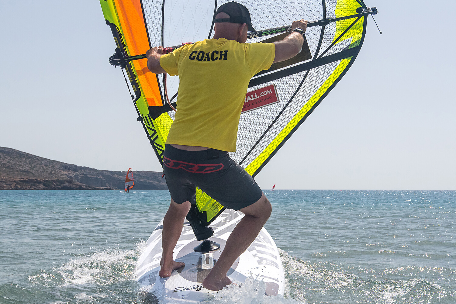 - Aggressive scissoring: turn the board up and downwind and really feel how much to use the rig, scissor your feet and counterbalance with your hips. And move your back hand for turning downwind. You will also realise how using your ‘vision’ really assists here.