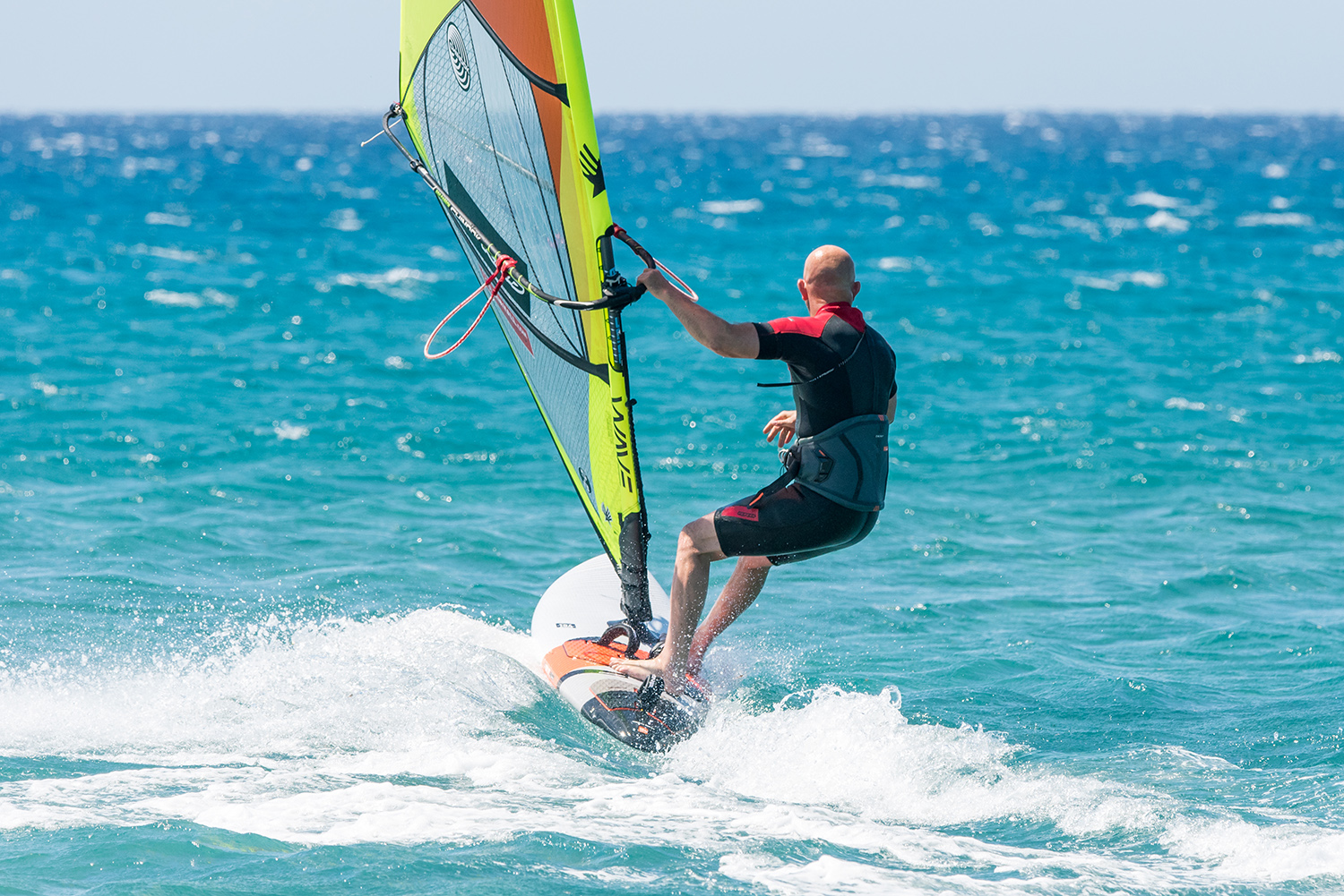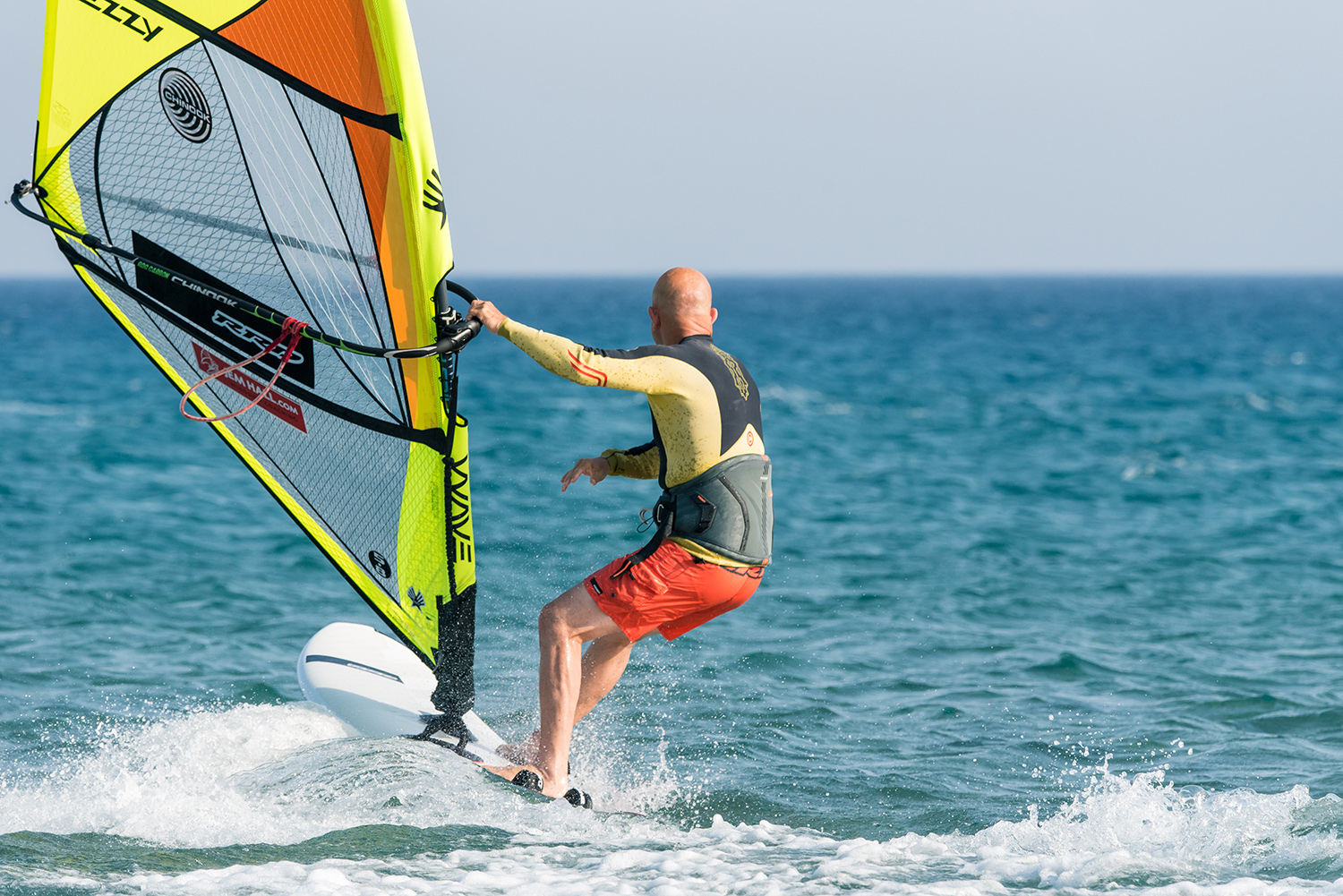 - One-handed sailing: ironically with one hand off the boom (whilst hooked in) your hips have to be more reactive, and are tasked with either controlling or producing power with more alacrity. Furthermore, your feet must also take care of steering the board more. Having improved skills in both of these will then mean you are more able to move your hands with ease. This drill is hands down THE best way to improve your stance.