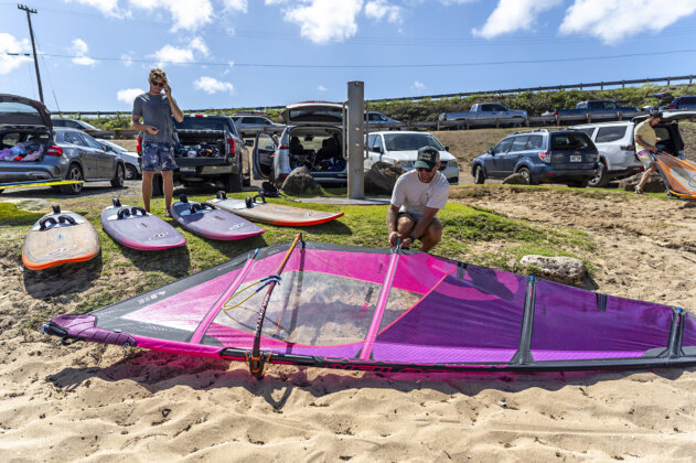 I’ve been using the board with Robby’s fin setup, which is an 18 in the back and 11’s on the sides. For straps I usually keep my front straps in the middle and move my rear strap all the way back, and I have been keeping my mast track around the middle.”