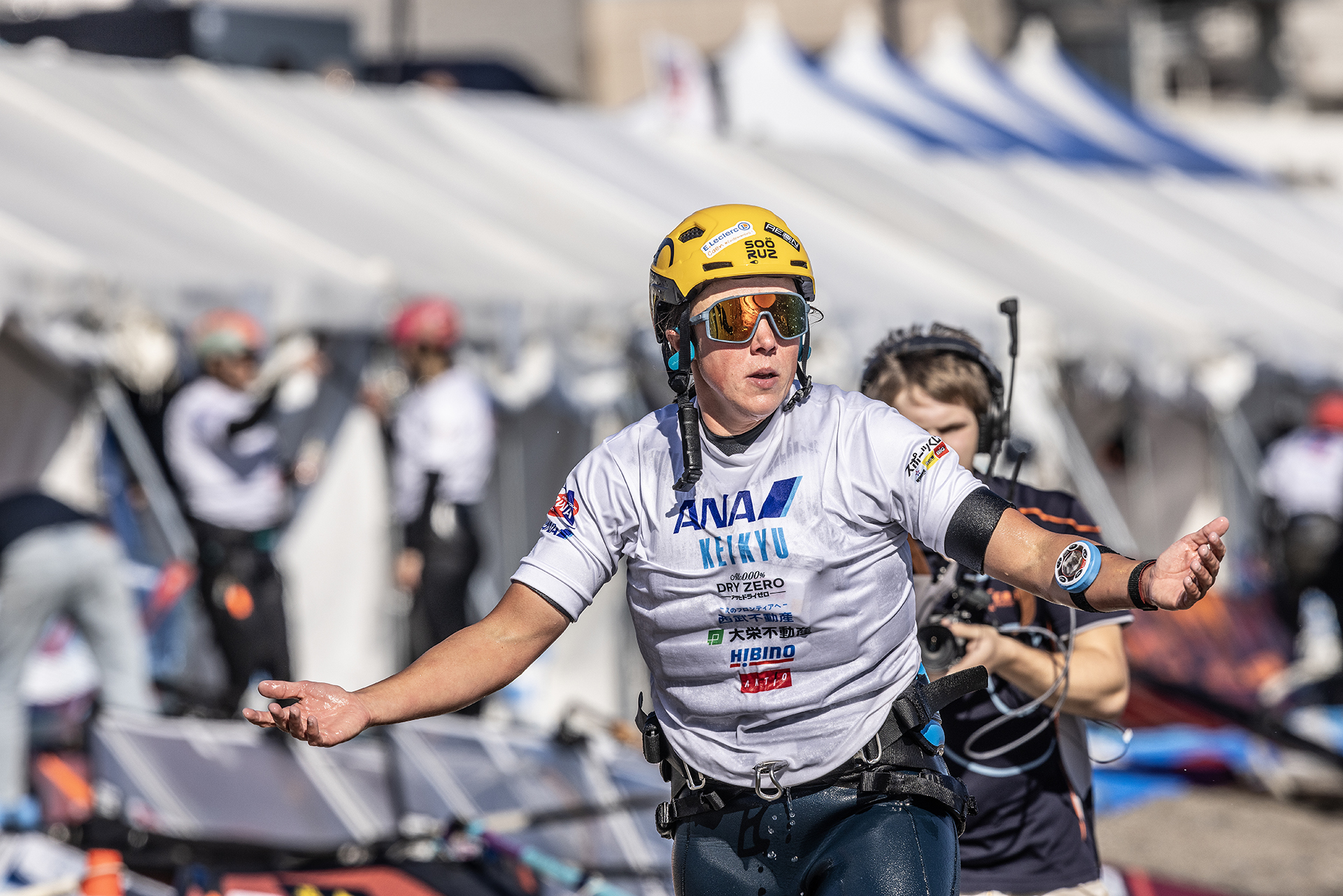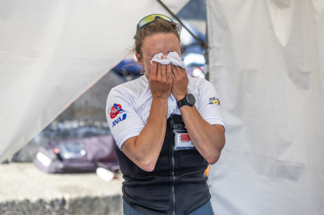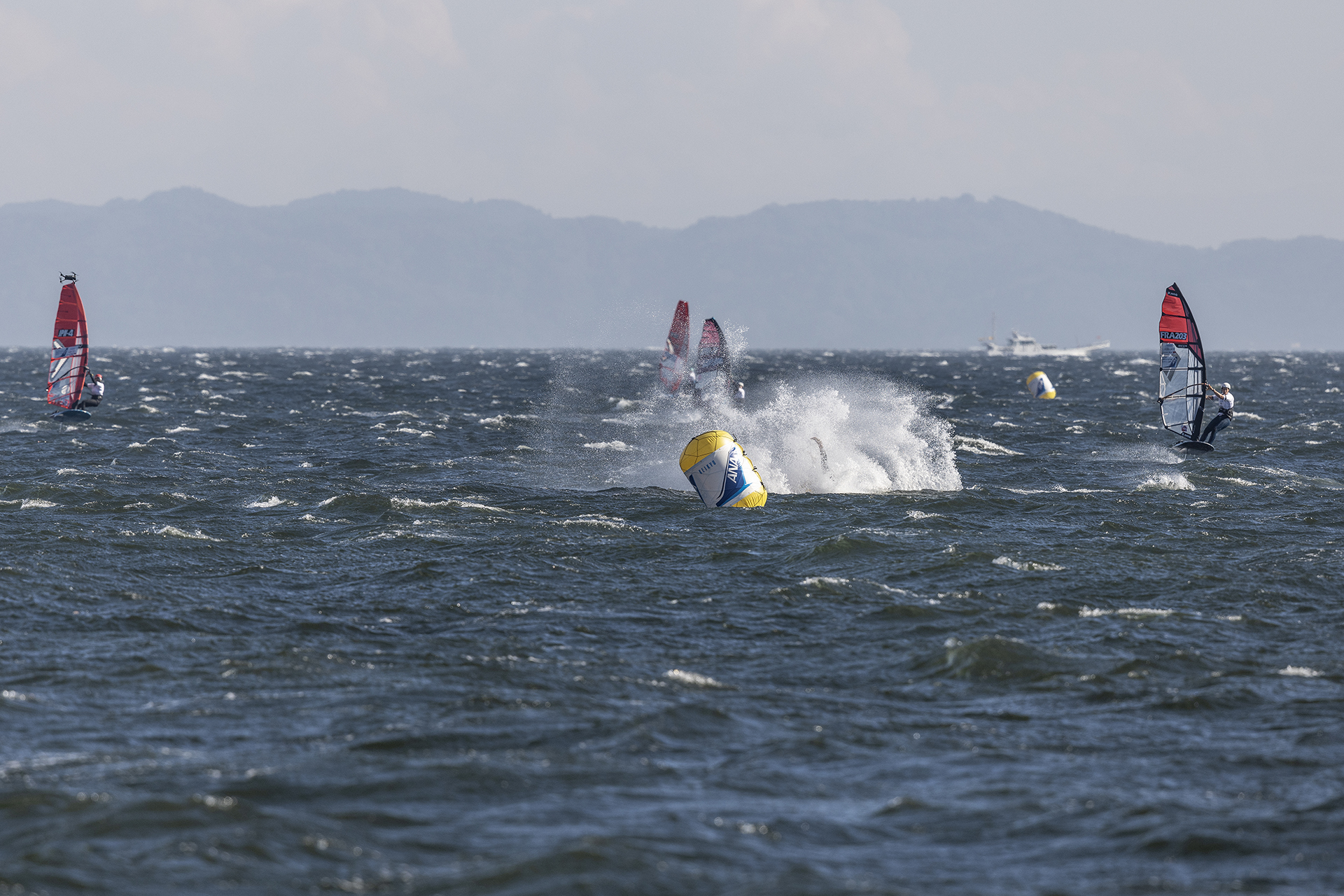 And then yeah, I raced the semi-final with a solid start and great first gybe. I had a healthy lead, so I was like, it’s OK, just have to finish it. And then there was a gust like 15m before the third buoy. I saw it coming. I was focused. I was not fast. And then the foil goes up and up…crash! I was so close to the mark that the catapult brought me downwind of the mark. I was so unlucky.