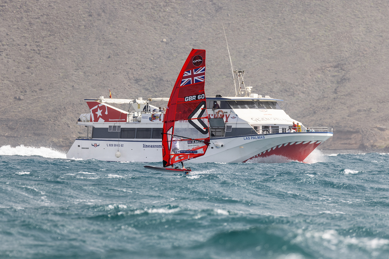 The craziest moment was going from Famara to La Graciosa as the wind was so strong. I could not even close the sail anymore and was struggling to sail in a straight line. I dropped the sail a few times and there was a lot of water flying around and it was demanding work pulling it back up. When I arrived at the leg finish, I was last and everyone was waiting for me and they started the next leg straight away. The waves were looking huge and it was a tricky section. We thought we had the hardest part behind us. My coach, Olga Maslivets, had to give me a pep talk to tell me I could do it. When we left La Graciosa heading into that huge swell, I was a bit freaked out. I did not know how I was going to be able to reach the end when I could barely go upwind anymore. I had to trust my coach. There was not much room left for any doubt. I had to focus hard on keeping the board from crashing into the waves. I was at the point of no return and it felt like a dangerous moment. If you dropped your sail, it would be hard to find anyone out there. I could not see my support boat for a while and that was quite scary. The cliffs were huge and the waves were massive. I just had to make sure to keep going until I finally heard the motor of the boat again.