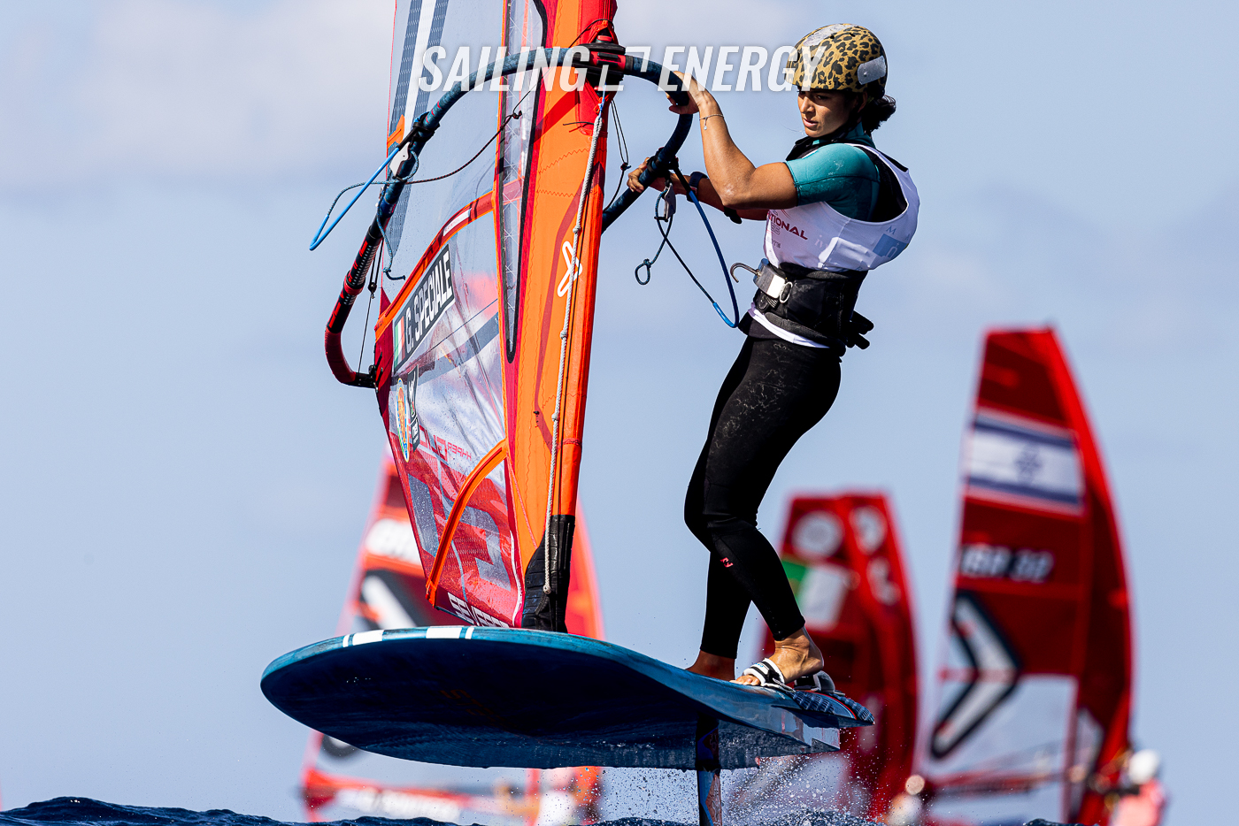 The first event of 2023 for the new Olympic foiling windsurfing discipline reached its halfway point today with a change in the leadership of the women’s fleet. Sharon Kantor (ISR) is the new leader moving ahead of Spaniard Pilar Lamadrid, who dropped to second place, just two points behind. Sam Sills (GBR) still dominates the men’s fleet. Tomorrow is the penultimate racing day.