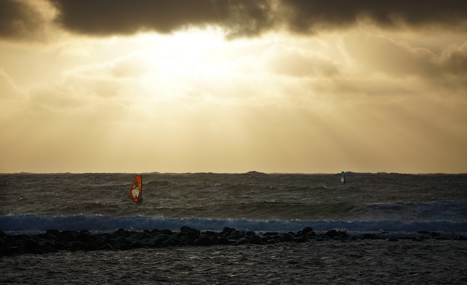 My watch beeps, telling me there are 10 minutes to go. I´ve just finished my seventh wave ride. It’s difficult to tell how I was doing against the others. I´d seen two sailors go down with broken masts and the jet ski pick them up. But three of us were still going.