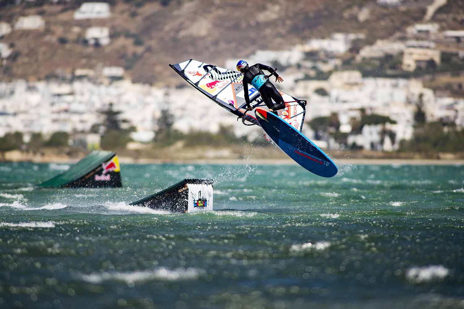 We had already built one ramp about three years ago with my friend Stamatis and saw that it worked perfectly fine in the shallow waters of the lagoon at Naxos. As soon as I joined the Red Bull team, we decided to make something a lot bigger! Red Bull liked the idea of ramps, since it was not something in windsurfing that you see every day! For me it was a perfect way to improve my port tack jumping as well.