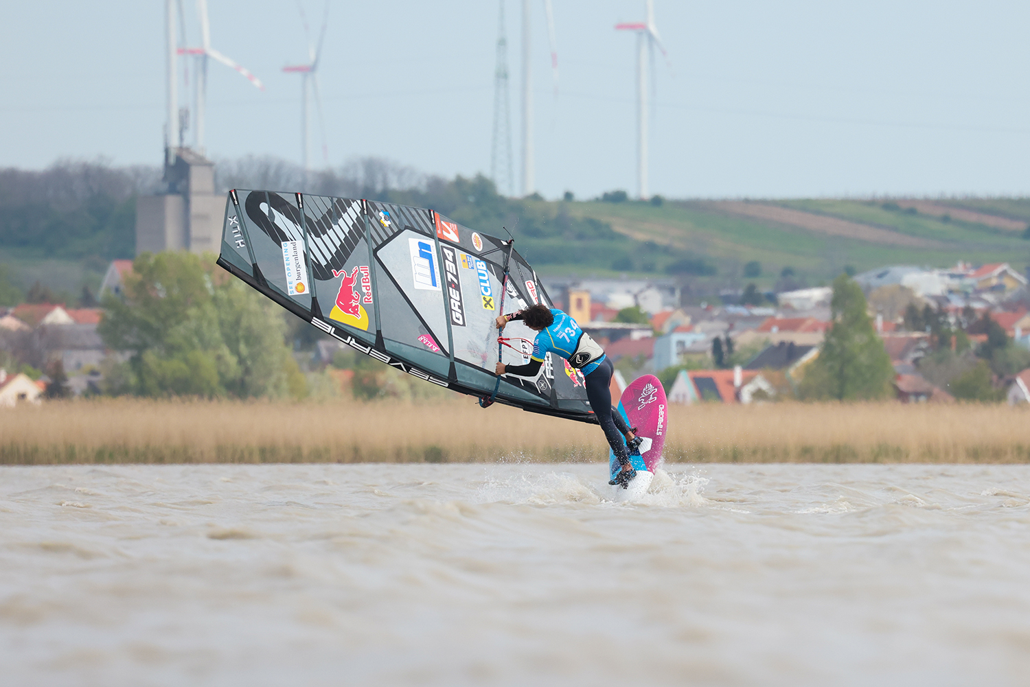 After Bonaire I headed to Lake Neusiedl, Austria, where I was incredibly stoked to win my first ever event on the European Freestyle Pro Tour. Even a couple of months ago I wouldn’t have thought this was possible with the limited amount of on the water training I had. It was a super tough battle with Jacopo Testa in the single final and Steven Van Broeckhoven in the double elimination final. I believe the mental preparation the months prior to the event made the biggest difference compared to my previous years of competing. The most challenging part of an event like that is to always keep levelled emotions throughout the competition, so that your focus can thoroughly be on performing one heat at a time. To me it didn’t matter in the moment what heat was next or who was watching, I didn’t care. The only thing in my mind was the moves I wanted to make. Spending many hours in the gym gave me the edge in the light winds, as I was able to hold on to a 5.6m for the whole competition. The feeling of winning is very hard to put into words. At first I was not too excited about it, but after some minutes I sat at the edge of the lake by myself and it kicked in that I had just won my first European championship event! The joy I felt was indescribable, truly. All the hard work paying off felt like the biggest release. Normally I am not the biggest of celebrators, but the party at the end of the event was pretty wild, though we had the tow-in finals the next day so it wasn’t a late one ha ha! I’m going home for some weeks till it’s time to pack up for the next events. I didn’t think I would say this this year, but my eyes are on the title. It’s gonna be a tough one!