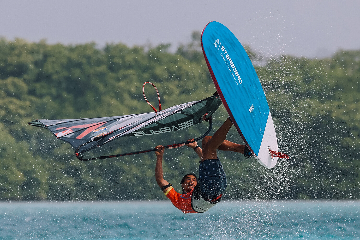 The closer I came to the EFPT Bonaire event, the more confident I got, not only in my sailing, but also my tactics and strategies for the competition. We decided with my mental performance coach to not set a goal for what place I should reach, as it was my first competition in 17 months. Since I had no ranking from the previous year, I had to go against top seed Steven Van Broeckhoven in the second round. After managing to beat him in a super tight heat, I knew I was back in the game. After ending up in second place in the single elimination, I realised how important all the gym work had been to get to this point. I was able to defend my second place in the double elimination, but lost to Youp Schmit in the final. This was a really important event for me, as I felt it would set the tone for the rest of my season.