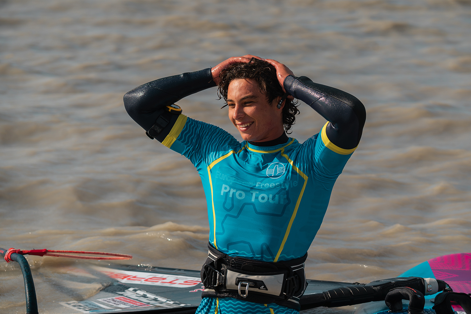 I injured myself on the 18th of November 2021. That season was my best year on tour on the EFPT. I kicked off with a sixth place in Austria, followed by another sixth place in Rhodes in the men’s division. I was seventeen and felt like I was just breaking through. In the previous years I had been struggling with my results, but I felt I was starting to make it quite far up the elimination ladder. I also won the tow-in European championships, which was also an important step for me. At the end of the year, I was at the last event in Marseille in France. The event was almost finished and I was having a bit of fun on a skateboard. I made a couple of mistakes and hurt my knee quite badly. I think the skateboarding irritated my knee, but I then went back on the water 2 weeks later and hurt it really bad. I didn’t realise I was not ready to go back on the water at the time and pretty much destroyed my left knee.