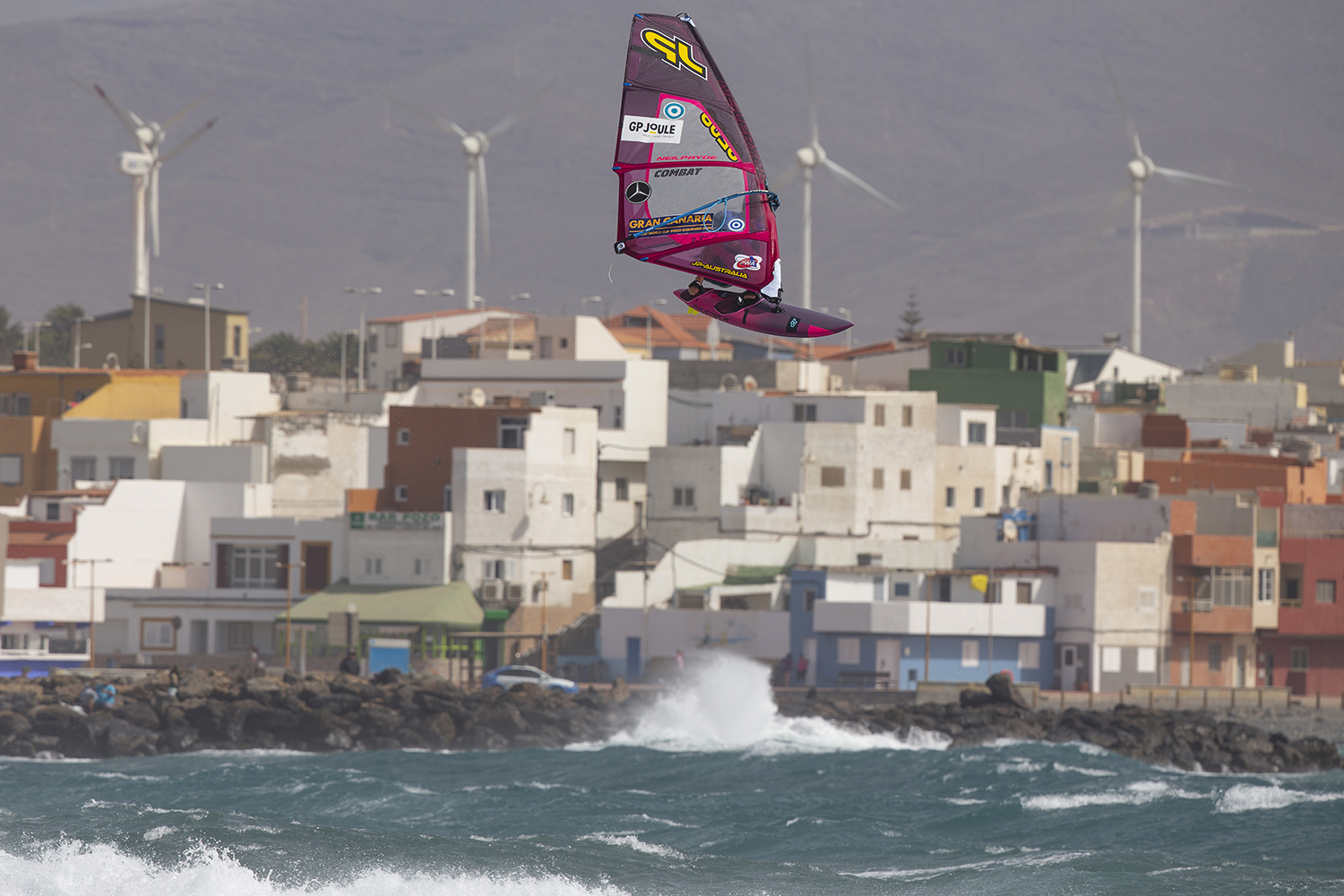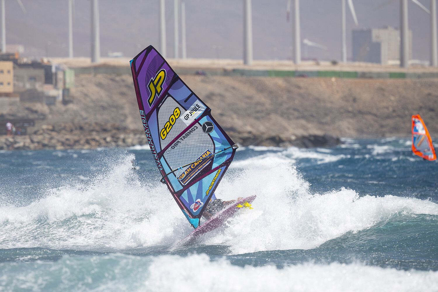 Talking about wave manoeuvres, some can become easier when the wind is onshore, e.g. wave 360s, shakas or sliding takas. Other manoeuvres like goiters or air takas become harder though. Backside riding is a big deal in onshore. You can use a wave that suddenly stands up in front of you to hammer a big backside slash, throw a shove it or shaka or to implement other jumps into the ride. Onshore winds will often transform a spot into a huge playing field with lots of ramps. With the right equipment choice you can refine your sailing technique and learn new manoeuvres. It also gives a lot of room for improvisation and to implement tricks into wave riding, so stay open minded and be creative on the water! The starboard tack onshore conditions around Marseille are Thomas Traversa’s bread and butter. Look where that took him!