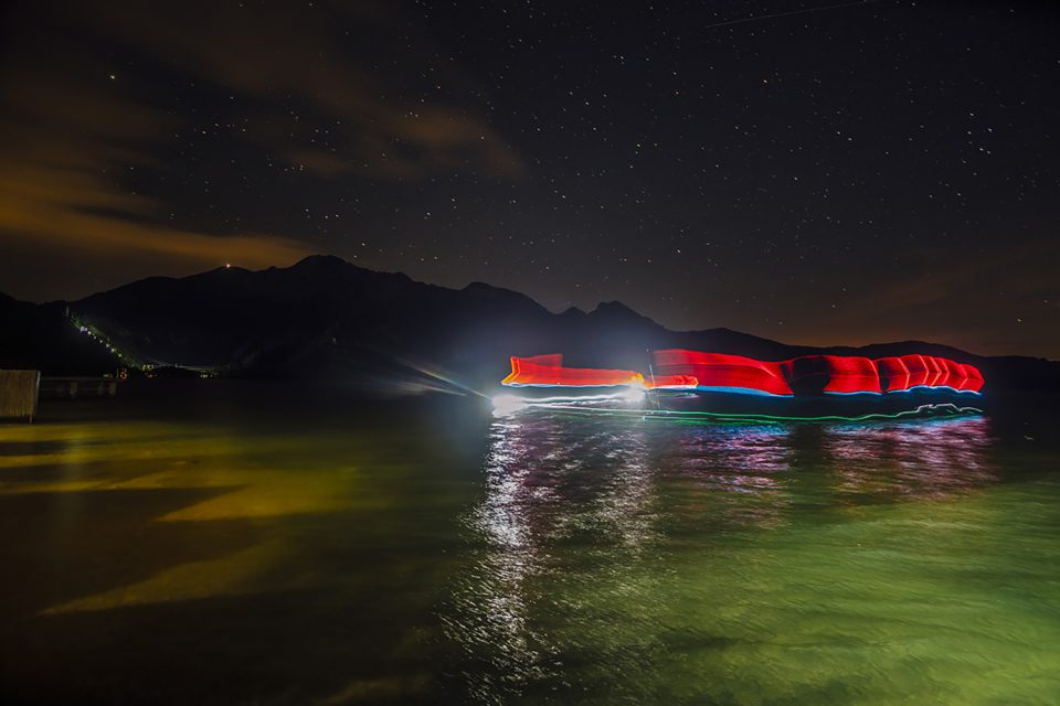 Why should you get up at 4 a.m., pack your windsurf foil and hit the water? Sounds completely absurd at first. However, if you want to light up the night with LEDs and a windsurfer, there is a good reason not least to create a breathtaking photo. The planning for one of my largest projects began months earlier. A pre-test in the garden and location scouting followed. With Andy Lachauer I was able to find the perfect rider who knows every corner of the Kochelsee like the back of his hand.