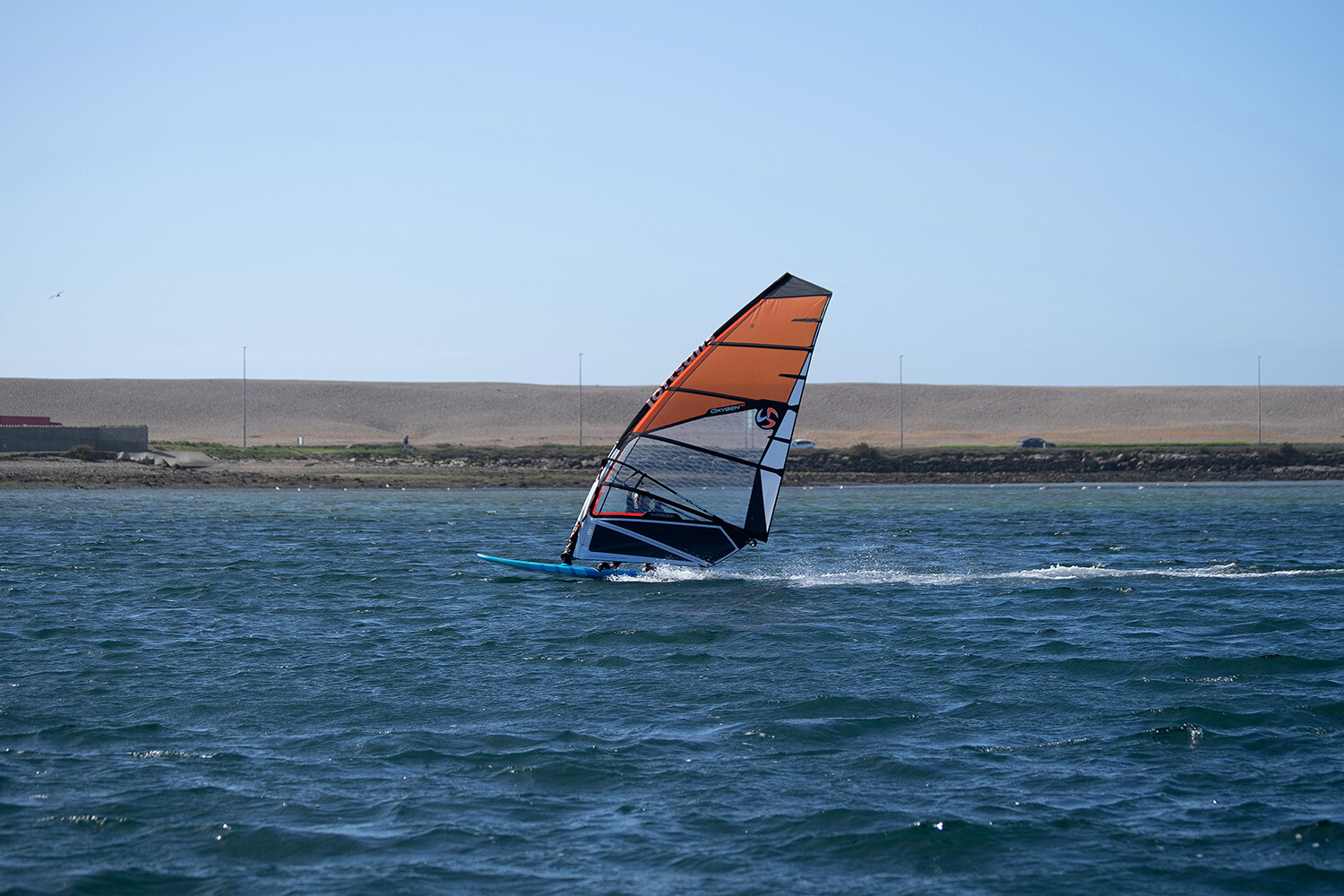 Once rigged, the Oxygen displays a considerable amount of luff curve, suggesting the power will sit low in the sail and with two clew eyelets, the sail can be easily adjusted. Another component that makes setting this sail a breeze is its fully opening tack fairing, which provides extremely easy access to the extension and downhaul. At the head of the sail, a double Dacron head panel is present to ensure the sail is easy to roll up and is not damaged when doing so. In addition to its design characteristics, the Oxygen is also available in two striking designs: an exclusive green bi-ply or a reinforced orange HD version (tested here) and is produced in a whopping ten sizes from 4.6 to 9.5.