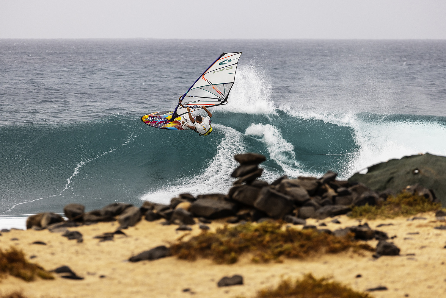 I had no intention of competing. My plan was to organize the crew and sit in the tent and oversee. I wanted to watch it and get stoked in that way. Then I called all the windsurfers that are good on the island, but some of them are now kite world champions or have their own businesses. They just could not do it. First and foremost, we needed Cabo Verde representation, for the pride of the country. The Cabo Verdians are very into their sports and the pride of representing the Cabo Verde flag. I didn’t want to abandon that process knowing that I had it in me to do a decent representation, which I did. So I got to work. I got a couple of sails and the boards I have are old, but I know them very well to say the least. I know how to catch a wave at Ponta Preta and how to ride it to my ability. So I felt fine to do it. I also reflected on the fact it could be firing with four guys out on the water. There are about ten guys that really rip and about twenty that understandably struggle because it is a new spot. I didn’t want to watch it and think, why am I not out there. I did not want to have a feeling of regret of not being on the water. That fear of regret was greater than my fear of embarrassment. So in the end I started sailing more and in the couple of weeks prior to the event I put some effort and training in.