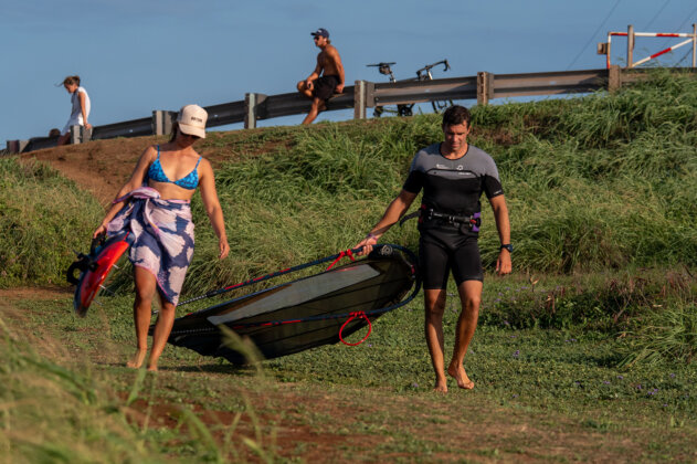 These days are few and far between in Maui, and often tricky and hard to forecast the best time when they do appear. Around 1:30pm the guys started to head out, and as one hit the water, the rest followed. First Matteo Iachino, then Morgan Noireaux, Robby Swift, Marcilio Browne and Tom Reuveny (Paris 2024 iQ Foil Gold Medalist) all trickled out – I say this because today was the definition of float (or sink) and ride. It was suuuuuper light and very much why I decided to crack out the camera rather than destroy all my gear!