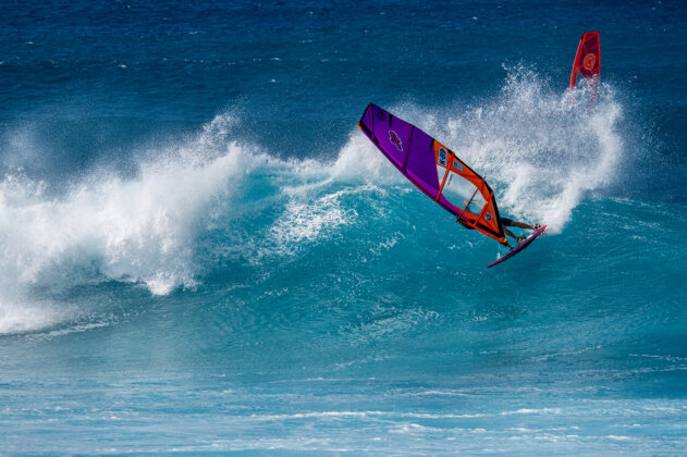 Wipeout of the day went to Marcilio Browne for a huge mid-aerial bail and was probably one of my favourite sequences of the day, but most gear destroyed had to go to Robby Naish.