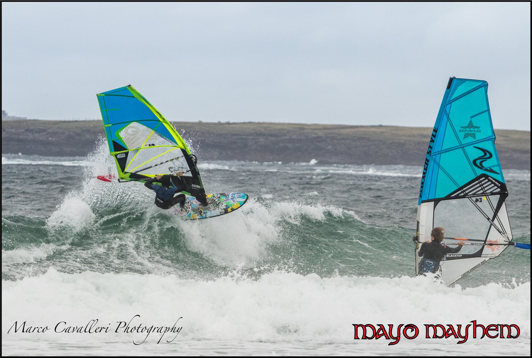 “As the dust settles and the winds change direction our memories of Mayo Mayhem 2018, at the “Battle for the Lake” festival will live on. This was the second year of the Irish Windsurfing Association (IWA) wavesailing competition run in conjunction with the Pure Magic Festival held in Achill ,Co. Mayo Ireland. The wave event competition was held in Bellmullet further north of the main festival event site in Achill making Saturday’s competition a major logistical challenge for the organising crew.