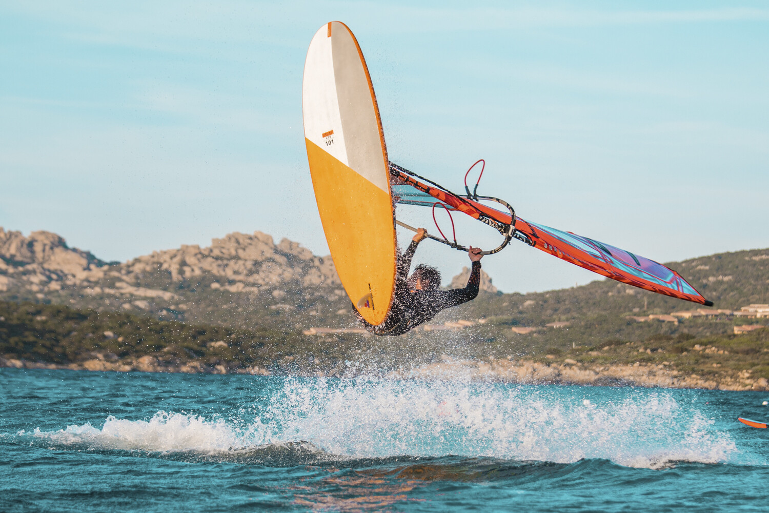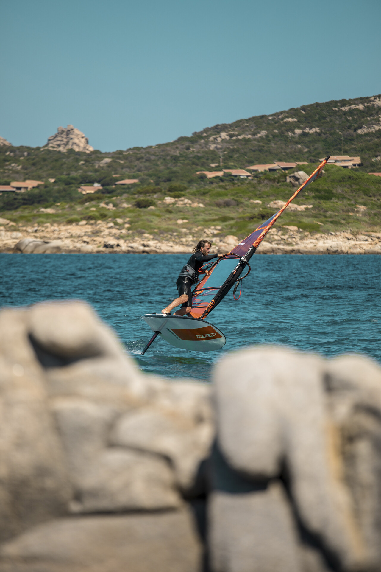 Porto Pollo is recommended for anyone who likes flat water to choppy conditions. Foil, freeride, race, freestyle, freestyle/wave are all well catered for. There’s a good variety of wind speeds, so if you are coming for a long time you definitely need to bring all your sail sizes, but if it’s a short trip ( 4 to 5 days), you can check the wind forecast and select what you need and save weight as normally Windguru gets it right for short-term forecasting.