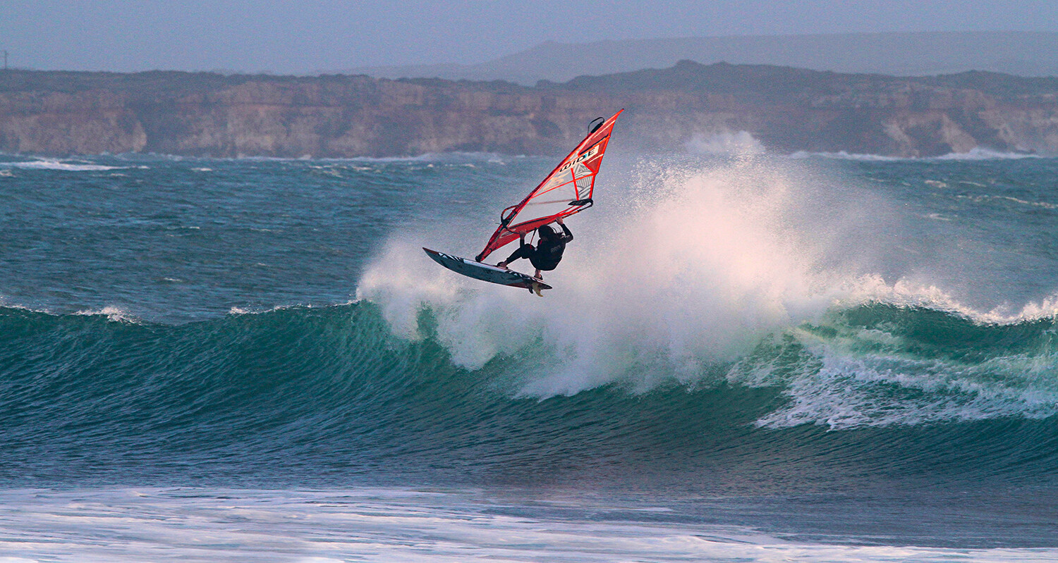 The best wave riding and also the most famous spot in Sardinia is Capo Mannu. It is a 3 hour drive from Porto Pollo, but worth the effort when it’s good. Renowned throughout the world, it is arguably the best spot in the whole of Italy and is located on the west coast of Sardinia, about halfway down the island. On the best days you can find real quality, with steep and fast waves. The best conditions are found with winds of 15-20 knots and wave heights around 3 metres. On larger days and a short drive down the coast, is a better spot known as Mini Capo, a perfect down-the-line wave, very fast and offering a vertical wall, it’s often compared to Ho’okipa. Both spots are frequented by both windsurfers and surfers, with Mini Capo being particularly popular with surfers. Sharing waves can get complicated at times with the surfers, so sail with respect.