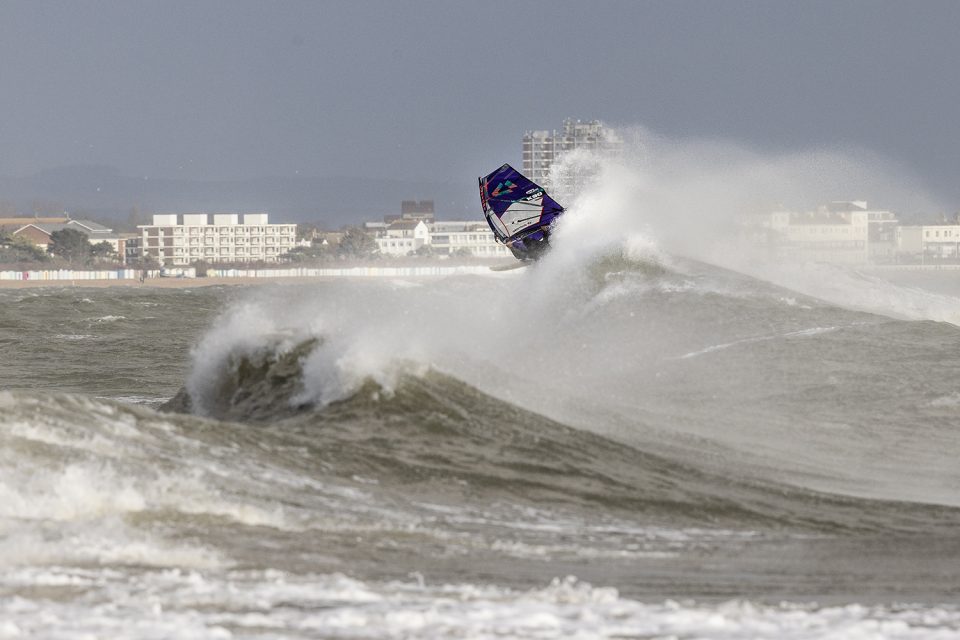 The waves at Pagham were surprisingly clean and powerful on the inside, offering some beautiful hollow sections, which were just begging to be hit. It was great to see Nik Baker sail in cross-off conditions as opposed to the normal cross-onshore conditions he scores back home in Shoreham.