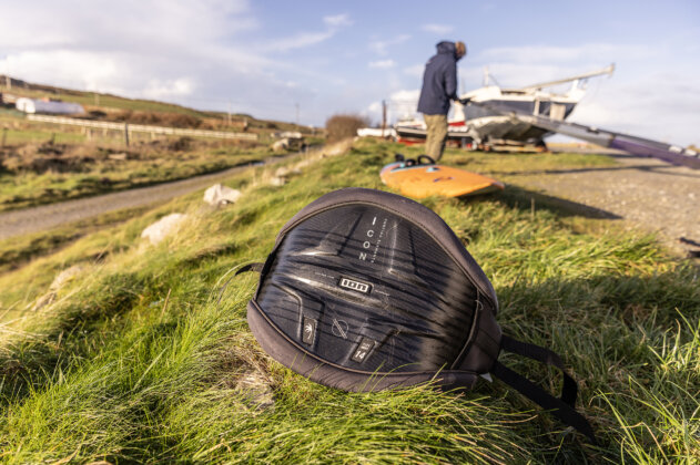 Timo wasted no time rigging his 5.3 Super_Hero D/Lab and jumping on his trusty 106L Ultra Grip. For warmth, he was wearing the latest ION 4/3 Seek Core front zip. Considering it was mid-winter, near the shortest day of the year, on Ireland’s west coast…with sunshine and perfect waves…it felt like Christmas had come early for the Motley Crew.