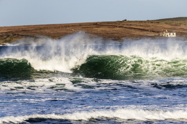 I set up base near the new sauna just left of the harbour and it wasn’t long before Timo was dropping into butter-smooth logo-high waves on the reef. In Ireland, you’re usually lucky to get ten minutes of sun between rain squalls and hail, but today the clouds only drifted in briefly. A December session with sunshine at Magheroarty? Madness.