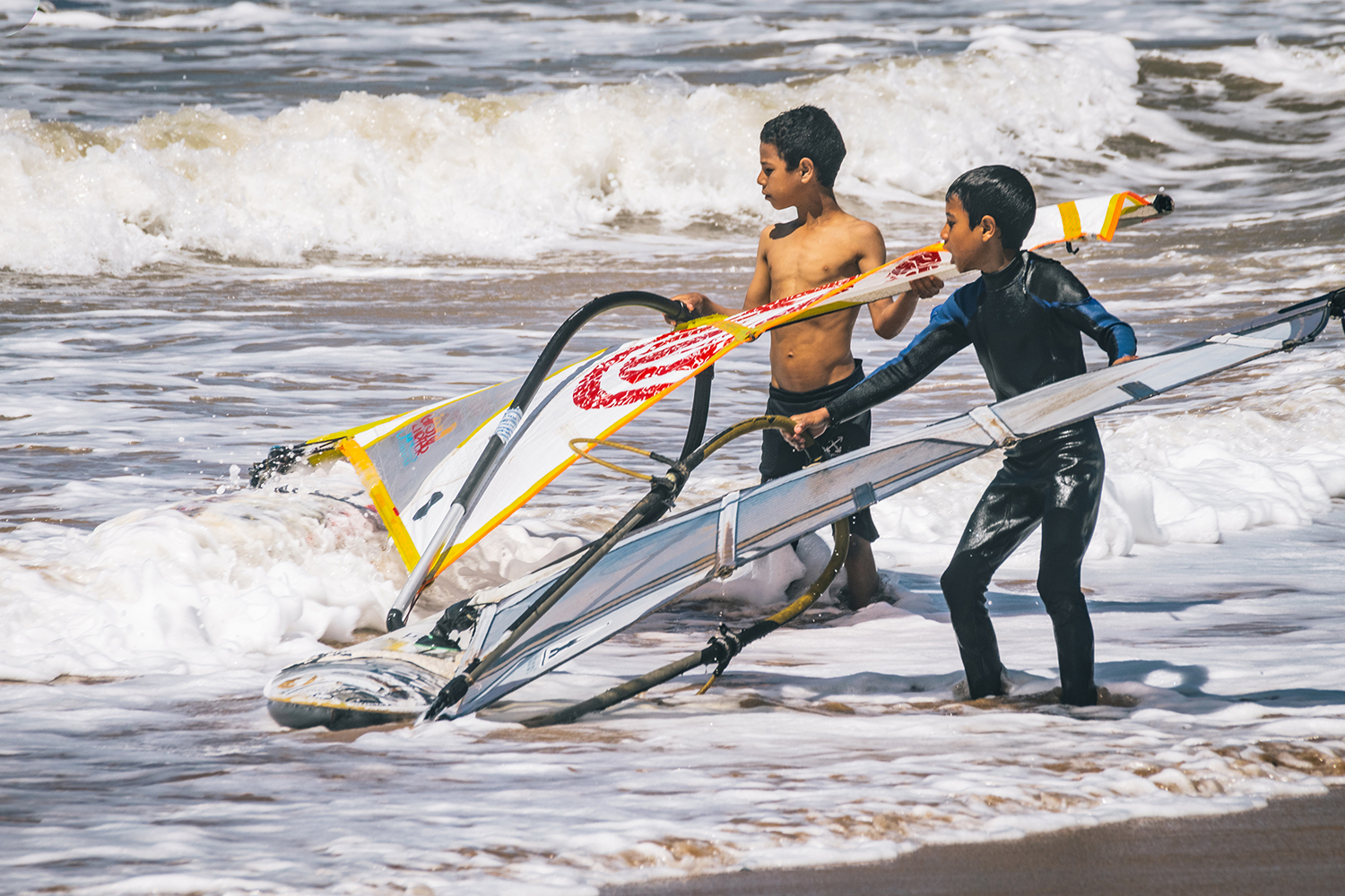 I’ve also made a lot of connections and relations with local people and myself and some other regular windsurfing visitors try to help them as much as we can to windsurf. Before this, no local people went windsurfing. It’s been a long-term project facilitated by passionate windsurfing tourists giving them old windsurf equipment so they can start sailing. Sometimes they get a boom made from different boom parts, just one sail for strong and light wind, or they only have one board, volume not important! It’s very pure windsurfing. For example I’ve known local ripper Soufiane Sahili since he was running on the beach at 3 years old. I saw windsurfing was an opportunity for him and other locals to get to know new people, learn new languages and a lot of those people are now working in surf/kite/windsurf schools, and thanks to windsurfing, they have had the opportunity to grow and have success in their lives and earn money too.