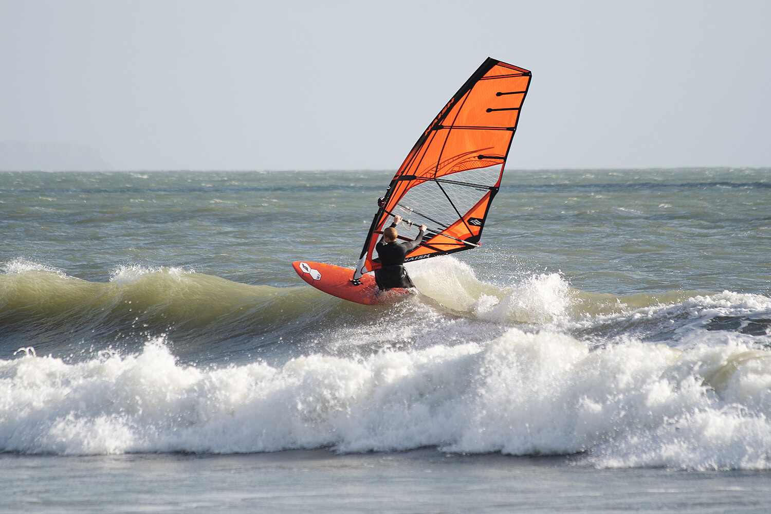 For the 2023 season, this sail has been redesigned with a shorter luff length making it the lowest-aspect sail in the test lineup, but in the Naish lineup, the 3-batten “Chopper” is the lowest aspect. Rigged on the Naish RDM 60, the Force 4 has a moderate display of luff curve maintaining some good flex in the sail whilst also having twin luff panels, ensuring the shape of the leading edge is maintained and controlled. The sail claims to have an “in-between-the-hands” feel, ideal for both pure wave riding and manoeuvre-focused wave sailing. The sail also features equilibrium batten pockets that are said to improve rotation whilst being light and durable and features 2 clew eyelets.