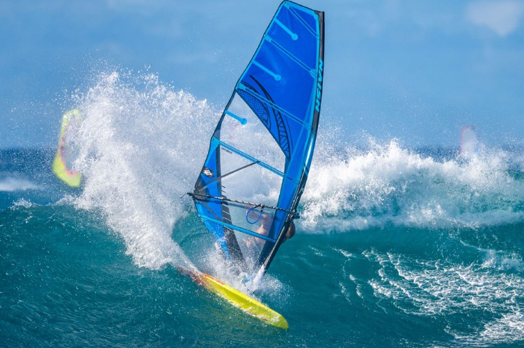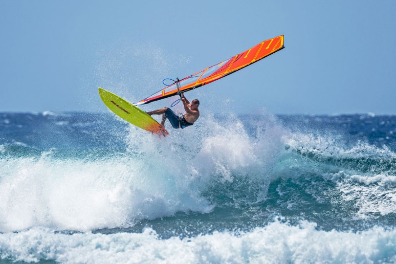 The Force 5 is Naish’s 5-batten power wave sail but don’t be fooled, this sail also doubles up as a strong contender in the bump and jump and freeride arena due to its stable power and vast wind range. The sail is designed in the brand’s classic Hawaiian look and is produced in two colours, orange and blue. Available in eight sizes from 4.0 to 6.2, this year’s test explores the upper limit of the Force 5 size range. Naish claims that whilst the extra power delivered by the Force 5 helps larger riders in lighter winds, the increased handling ability in its upper wind range will be a huge asset to all sizes of riders.