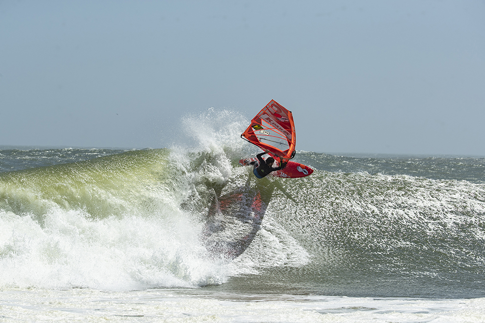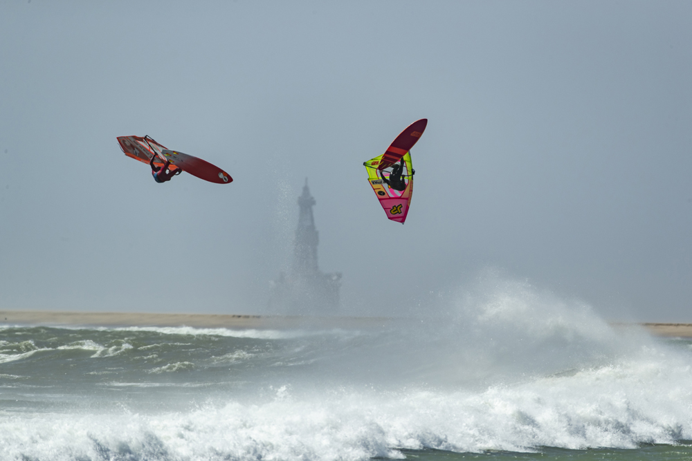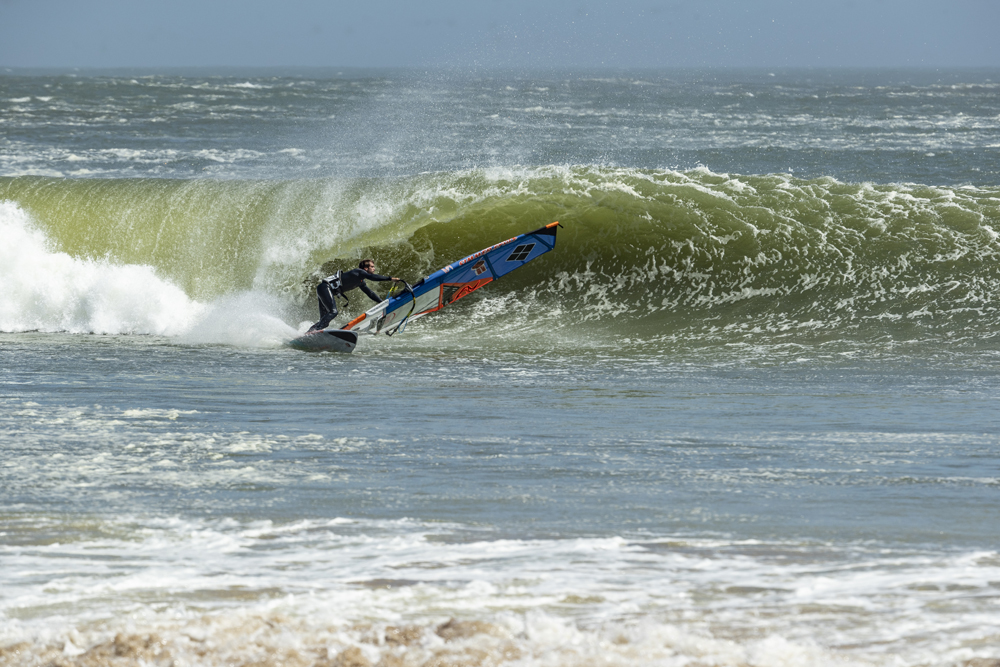 On the third day we arrive a little earlier and many vehicles are already at the edge of the beach. The waves are here! It is still too early for the wind to rise, but we have in front of us what we came for: the same perfect waves that we had seen in the videos. We immediately jump in with our surfboards and manage to catch some nice waves between the long walks on the beach that the powerful current imposes on us. The wind finally picks up and the waves keep getting bigger, so we drop our surfboards and quickly prepare our windsurfing equipment, overexcited by looking at these magical conditions that we had dreamed of.