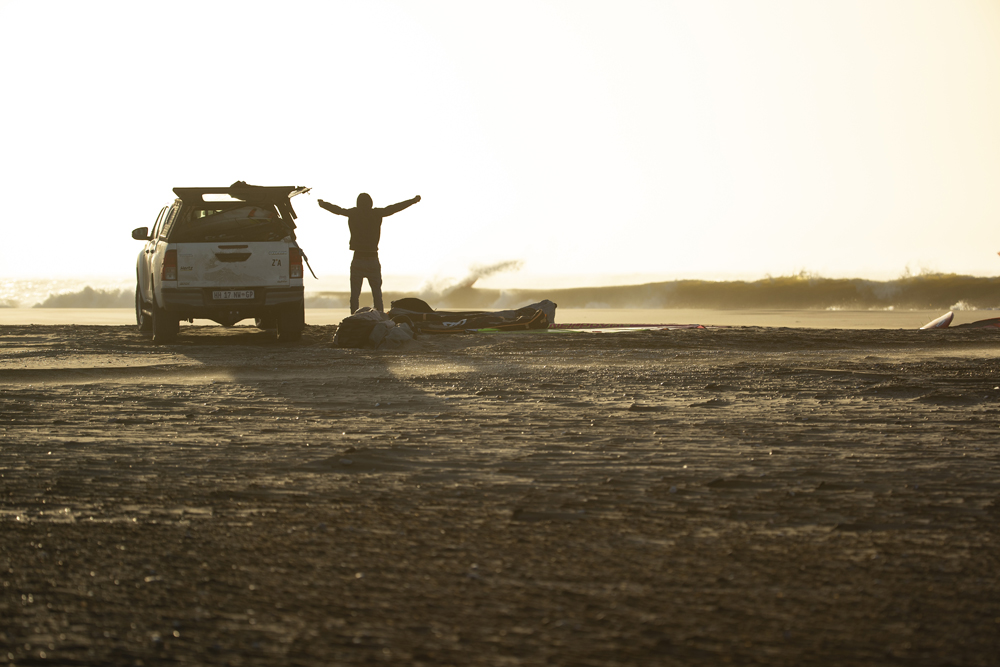 If you think about it, the most popular windsurf spots have several points in common: the regularity of wind conditions; a relative ease of access allowing the presence of a community of windsurfers, mix of locals and people from elsewhere; at least as many people on the beach as in the water. Whether on Ho’okipa’s hill, Pozo Izquierdo’s small cafes or Cape Town’s nightclubs, windsurfers usually enjoy and seek contact with other windsurfers after sessions. A bit like migratory birds, we gather according to the seasons in different parts of the planet, to which we like to return regularly to enjoy the good conditions in the company of the local windsurfing fauna, who are generally more sedentary and don’t have a choice but to share their little piece of paradise. At Skeleton Bay there is no windsurfers on the horizon, no trees in the shade of which to rest, neither parking nor lawn, nowhere to shelter; except the presence of seals and some jackals, no life nearby.