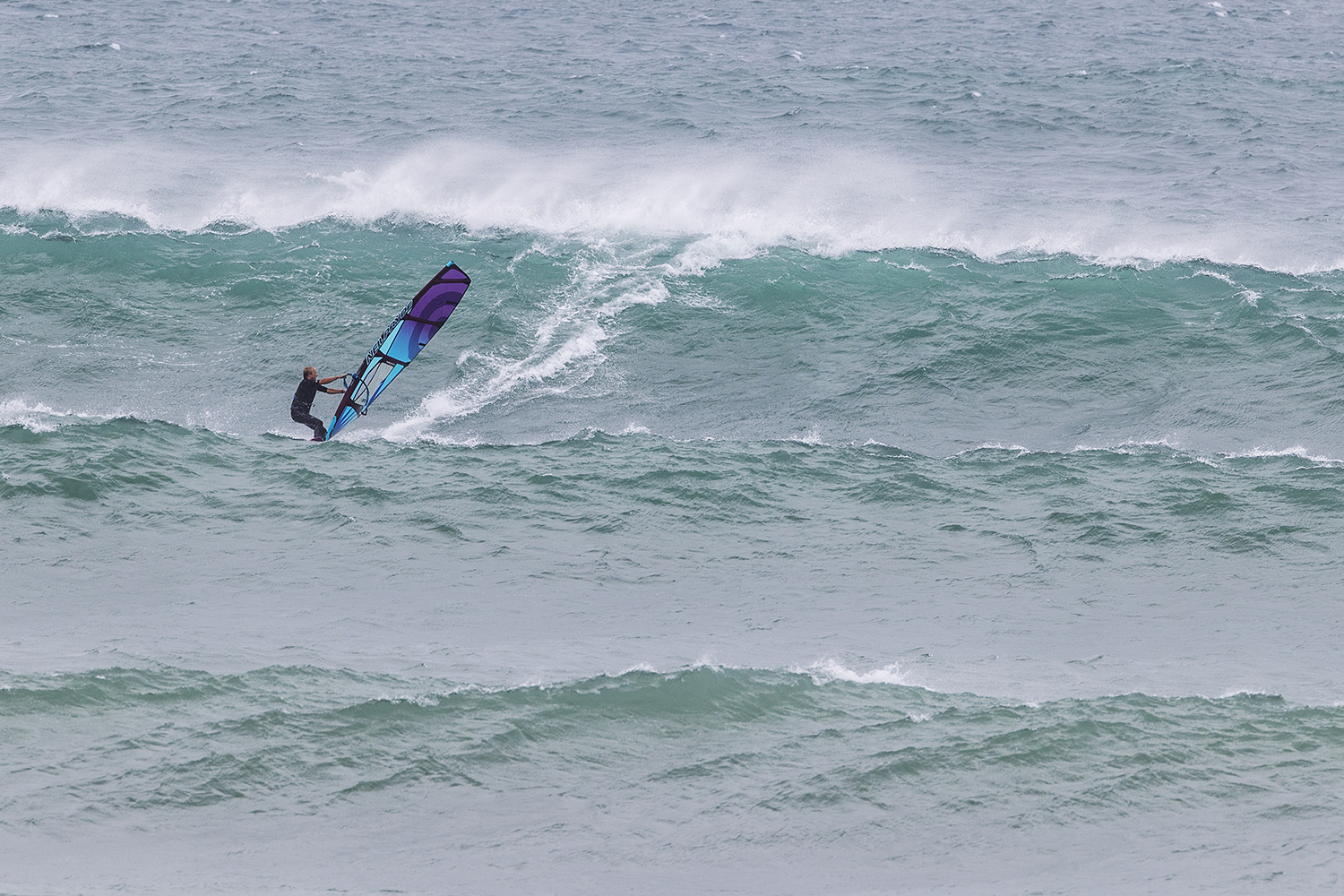 We cruised down to Gwithian where there were already a bunch of vans in the car park waiting on the high tide to peel back from the rocks at the bottom of the goat trek. As soon as I arrived, I grabbed my camera gear and wandered away from the crowd, determined to keep my distance, respect the locals and just do my own thing. The awesome thing about windsurfing is that the social distancing on the water especially with wave riding is a natural thing. You line up on a swell, ride the wave, kick out and then head out for more. Today was actually quite windy compared to the forecast so the action from the word go was thick and fast.