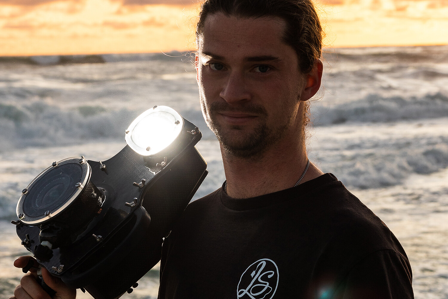 - Samuel with the flash housing. Photo: Dani Tome