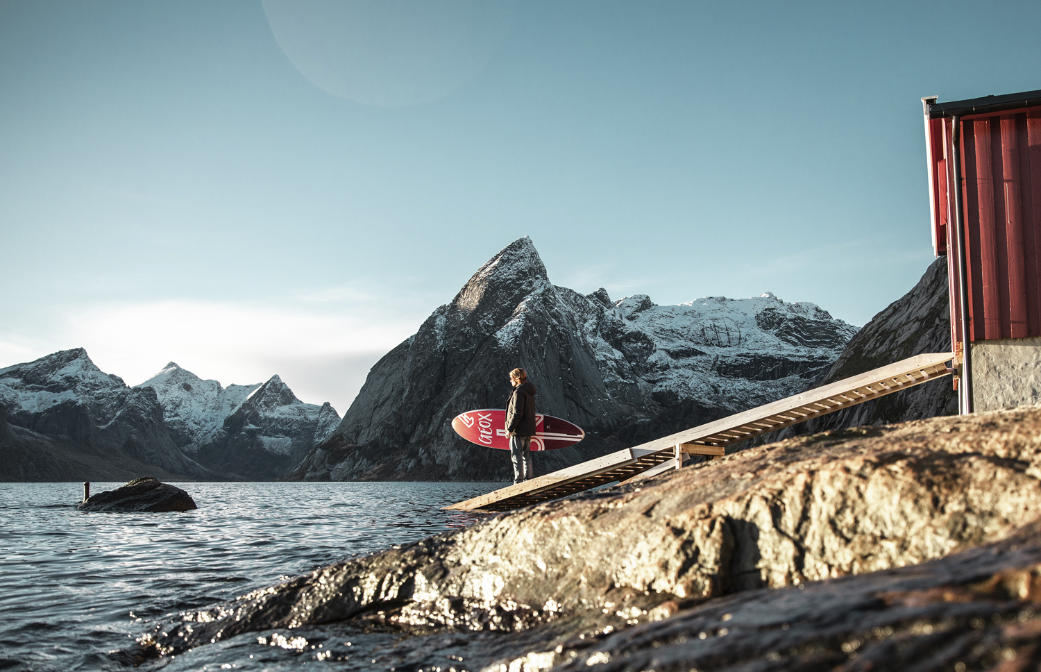 There is no place to rent windsurfing gear, but it’s easy to get a surfboard at the surf centre in Unstad (www.unstadarcticsurf.com). This is a great local family business that runs a very successful cafe and surf school. They also do great accommodation and serve the most amazing cinnamon rolls in Norway, sooo delicious! Most days we had really good waves at Unstad for surfing, but when it was too big we went to Flakstad where we surfed and SUP’d with a nice seal!