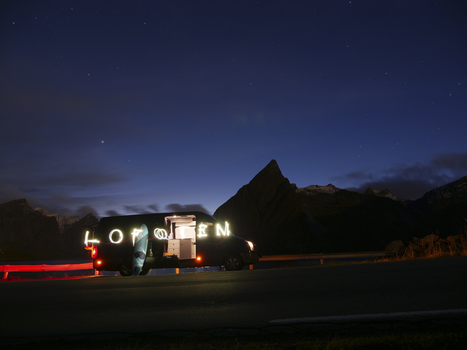 When we arrived in Lofoten some local windsurfers contacted us and told us where to sail. The local crew are a group of thirty windsurfers, mainly 30-50 years old, with many of them sailing since the 80s. The ones we met mostly freeride and slalom sail. They have a facebook group where they write to each other so they can sail together and when we arrived they wrote in the group that we had made it to Lofoten and we all met up at a spot called Stordalen. This day was a windy one. Rain, really cold and in the end we ended up driving too long to another spot and probably missed the best wind. As there were no freestylers living there, the local windsurfers could not recommend a freestyle spot for us. We used Google maps and found a freestyle spot close to a church at Valberg. It was hard to get planing, as it looked more windy than it actually was, and was pretty cold too, but we got the windsurf ‘fix’ we needed. One of the locals that joined us told us said they were having lighter winds than normal for the time of year, but I didn’t mind. For the first time I had decided to go somewhere not just to windsurf. I wanted to surf, hike, mountain bike and discover new places. This trip was not for training windsurfing, it was kind of like a holiday not having a “new move” to practice. So I did not care that we could not windsurf every day. Anyways we sailed 30% of the days, surfed 50%, biked and hiked 20%. Never bored, and the views made me feel like being in a dreamland. Lofoten was even more epic than I imagined. The first day we met so many other ‘van life’ surfers who were really friendly and set the tone for what turned out to be a great trip. I can´t wait to go back there again, and now when I tell everyone to go there, it will be with an even bigger smile on my face. My best memories would be waking up in the morning right at the beach at Flakstad, watching sweet waves while having breakfast, and then going out surfing, followed by mountain biking or windsurfing. Going to bed fully stoked about the incredible nature we have in Norway.
