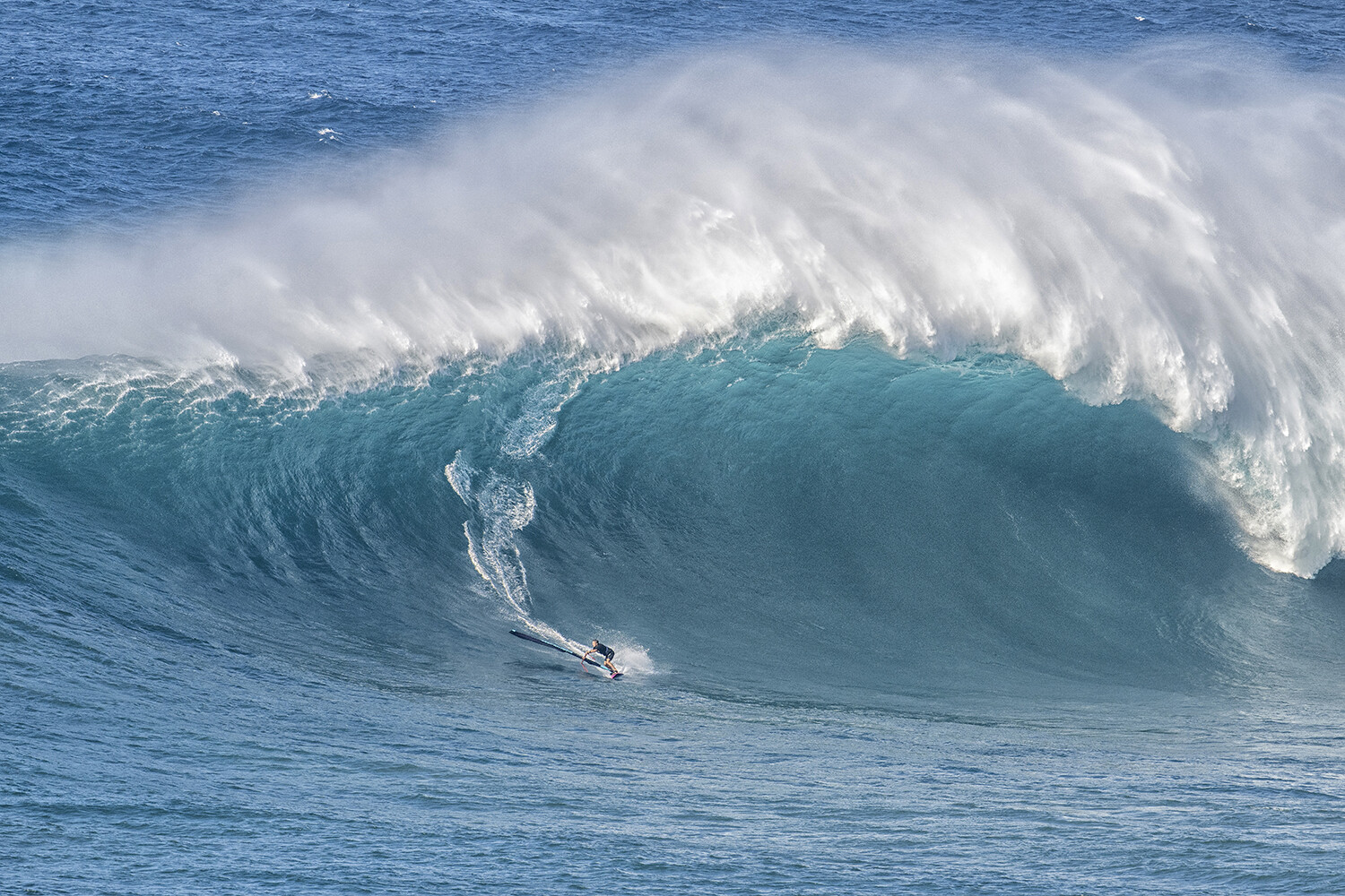 My first time riding Jaws was in 2013. In 10 years of chasing dreams out there I have learnt that there is a point where the bigger the forecast, the chunkier it gets. The waves are huge at Pe’ahi, but with this kind of swell it reminds you exactly why they call that spot Jaws also. There was so much energy in the waves and with the swell being so west, the bowl looked like enormous claws wrapping the whole ocean around itself.