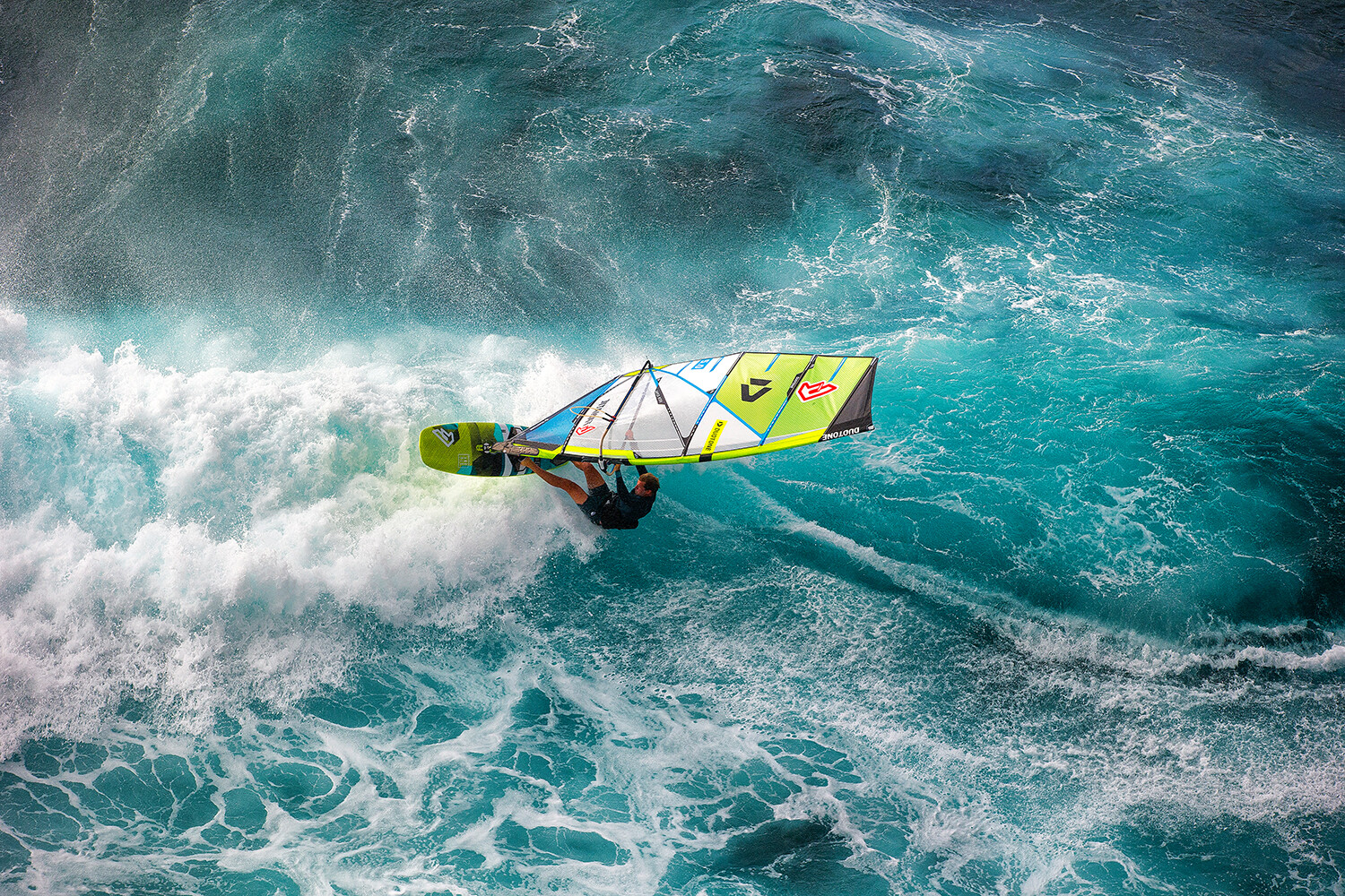 John Carter captures the natural beauty of the colours of a breaking North Pacific wave in Maui as Adam Lewis slices off the top.