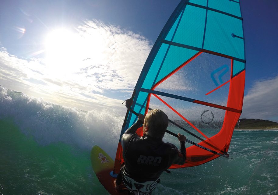 It’s the most exhilarating pastime of all – gybing on a wave and letting the moving wall carry you round into a planing exit. The swell in the pic is so perfect it’s cheating – but a big piece of chop will do. Thanks to the slope you can initiate much harder and tighter – which also demands you drop your hips down the hill and really commit to the inside.