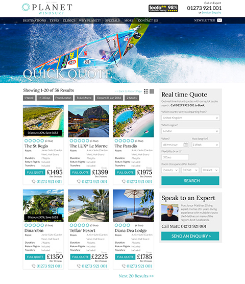 Planet Windsurf have just launched an innovative windsurf holiday quoting tool on their website, unique to the windsurf travel market. It instantly connects to live feeds from all the major airlines and over 50,000 hotels worldwide to give you a comprehensive windsurf holiday quote (Flights, accommodation & transfers) in seconds, whilst ensuring you get the best possible prices.
