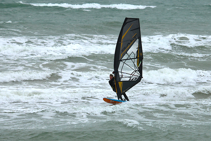 Tuned for light marginal conditions, the Spy upholds its end of the bargain and generates a good deal of bottom end power. The centre of effort is locked forward in the sail and is high enough to generate plenty of useable lift and acceleration through the hands as a gust hits. It feels solid and dependable, providing balanced feedback through both hands and driving through lulls as if on a mission. And yet, the Spy’s short boom length compliments its forceful nature, making the whole sail feel coherent and manageable. There’s real evenness and honesty to the sail’s sweet spot, meaning it walks the tightrope between power and control incredibly well. Power wave sails of old used to generate tonnes of power and torque per square metre and had to be met with an equally forceful sailing style, otherwise the rider could easily be consumed and dominated. The Spy offers just the right blend of qualities, which gives it plenty of appeal through the spectrum of rider weights, styles and abilities. It will find particular favour with those that like to constantly feel an obvious pull in their hands. Rather than having an on-off character like the Salt Pro (tested in the Jan-Feb issue), the Spy’s delivery is more fixed and unwavering without being too direct, always letting the rider know where the source is. As the wind increases, it can be re-tuned with more downhaul tension (loosening the leech even beyond the marker provided), using the lower clew eyelet to increase boom rake and control. It is innately fast, reaching an impressive straight-line speed even though it encourages a more upright manoeuvre-oriented stance. Its speed and dependable energy can be used to great effect in any environment, from charging around a flat-water arena, to boosting off ramps, or through fluid carving manoeuvres on a wave face. Whatever the conditions or discipline, the Spy has a wealth of tuning range to meet the rider’s demands.