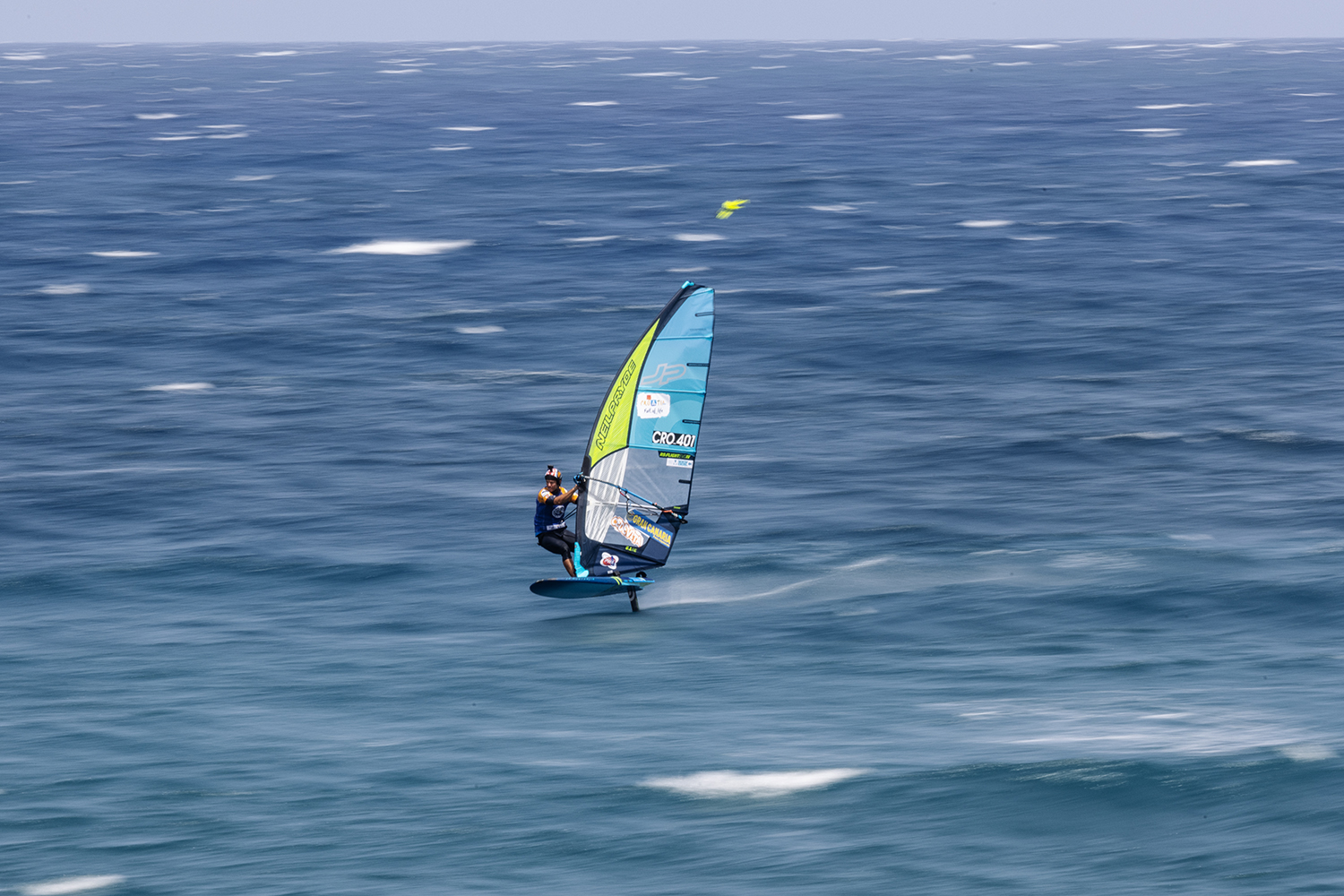 So there was no chance to take water, food or sugar. It was not easy. I mostly used my 5.1m foil sail. It was a bit of a gamble at the beginning of the season. It was that or the 6.5m fin sail. I knew after four months in Tenerife I was faster on the foil and as a sailor more competitive in these conditions. It suits me more regarding my gear and my sailing style. So this was my fifth sail, it was kind of a gamble, but so far it turned out to be a good move. You need to understand that this year we have only two wings. Last year we were allowed three wings. We have even faster wings and we can go faster, but the point is that they limited us. In the current rules fin has the advantage when it is over thirty knots.