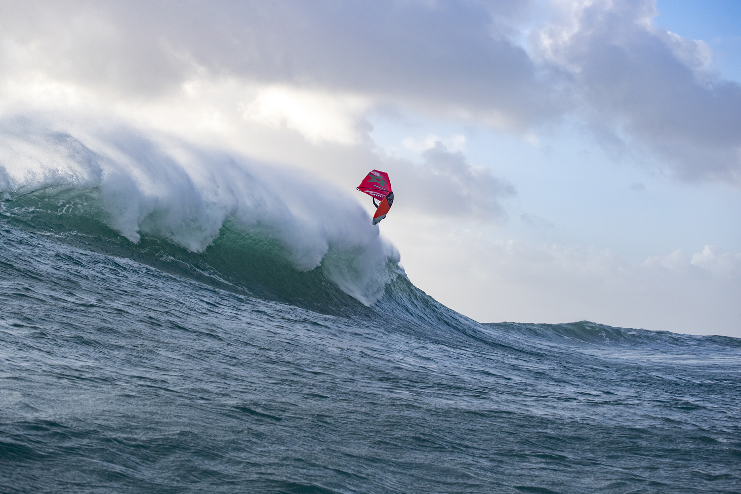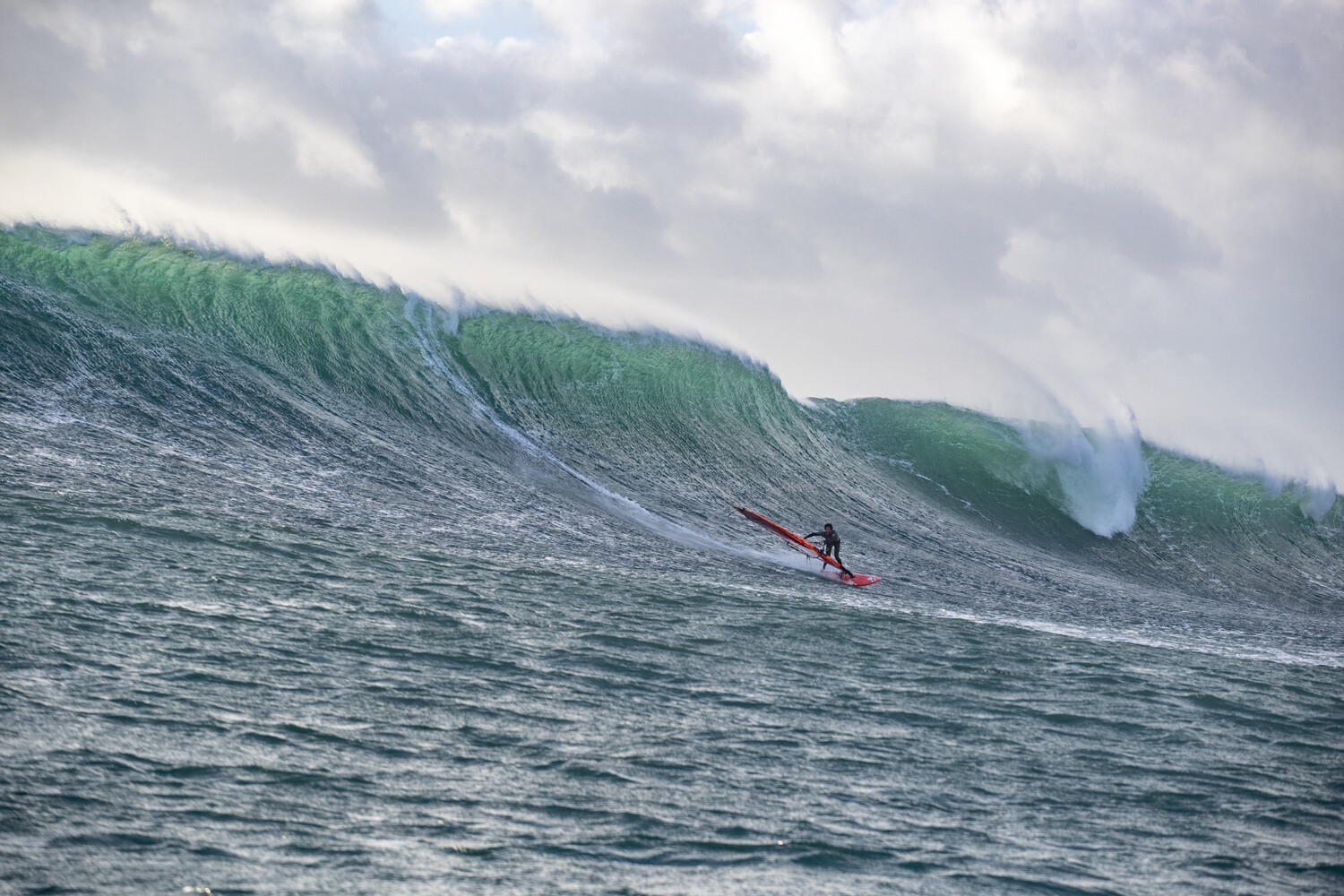 Then the magic happened. In less than an hour the swell doubled in size, the wind turned more offshore and got lighter, turning the tricky morning conditions into a classic day of big wave action. It was just Boujmaa, Philippe and I riding perfect over mast high bowls. Luke and Pierre on the ski were getting incredible shots and couldn’t help cheering for us on the big ones and the crowd on the rocks got even bigger; it felt like we were taking part in a great show, courtesy of Mother Nature. It is rare to create pictures and videos that really do justice to the beauty of big wave riding days in Europe, but with the whole crew of ‘The Windsurf Project’ it was more than that: they turned a perfect moment into a shared experience, a day to remember.