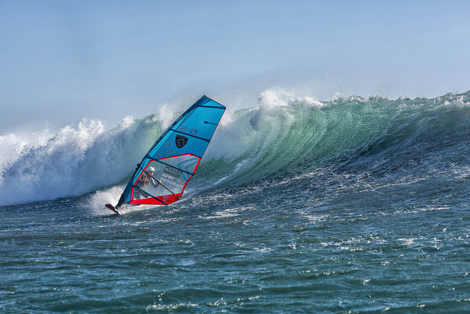 For the event I was using my biggest gear, a 5.0 Goya Fringe and the 88 litre Goya Custom 4 Quad. The big gear especially helped navigating the lineup in the light winds. Finals day started off small and light, but when the first lady’s semifinal started the swell jumped massively. It was easily mast high – if not bigger in the sets. You could see disappointment on the faces of some of the young guys who had just been eliminated having been unable to find waves. The women’s and the men’s sailing level rocketed through the roof – there was now so much more on offer.