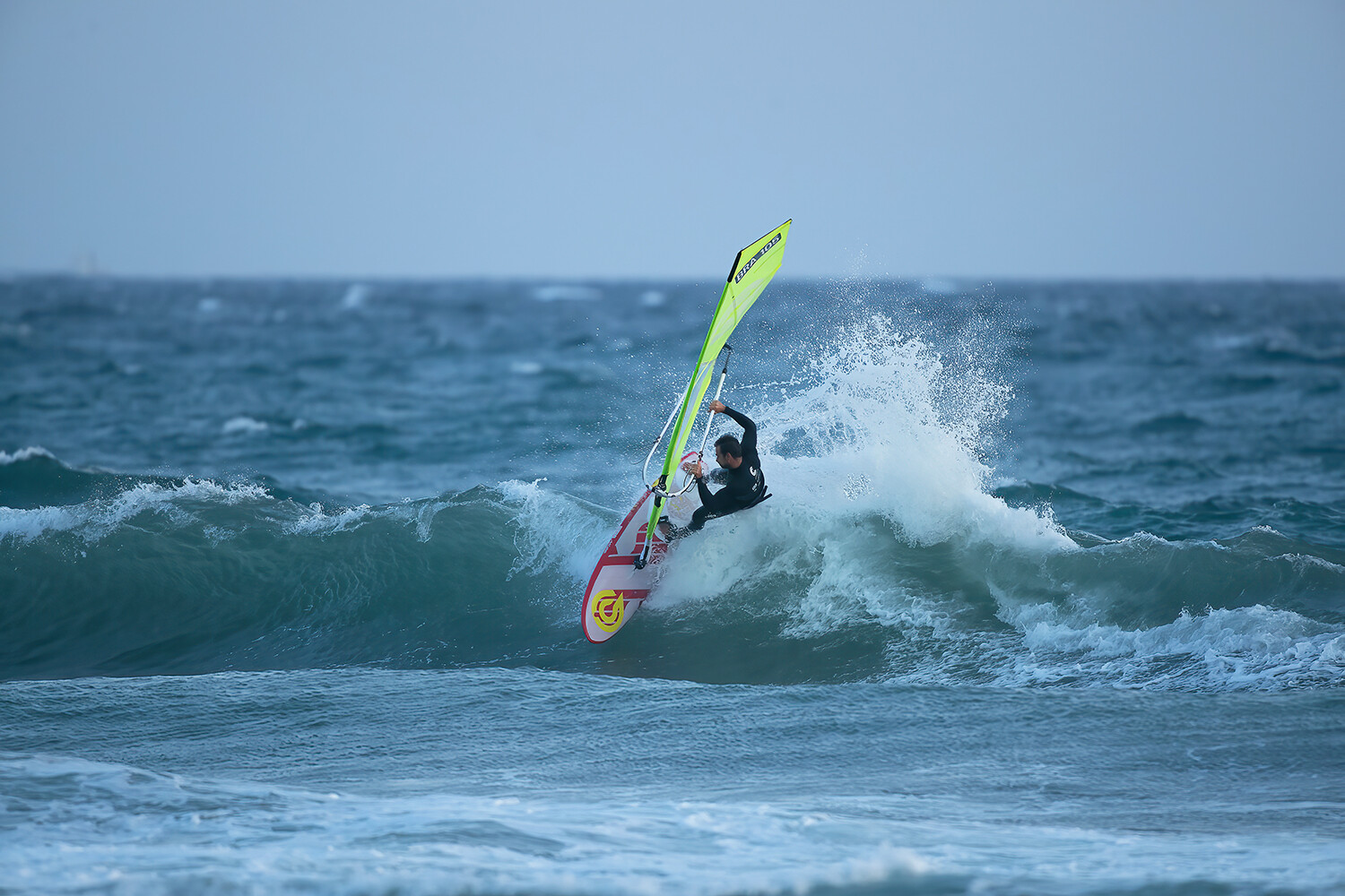 So a few days before the event we saw a little forecast appear on Windguru, and I changed my flight to head there 2 days early and get a session in. That session was really fun and it was great to get a better understanding of the spot. It started off really light, with 5.0 and 92-litre board, but as the day progressed it got windier and windier. By the end of the day we were riding 4.2’s and 84-litre boards. The wind was side-shore with heard high waves, really fun going frontside, trying tricks and jumps, and it was also fun to be back sailing with all the other competitors after a couple of months.