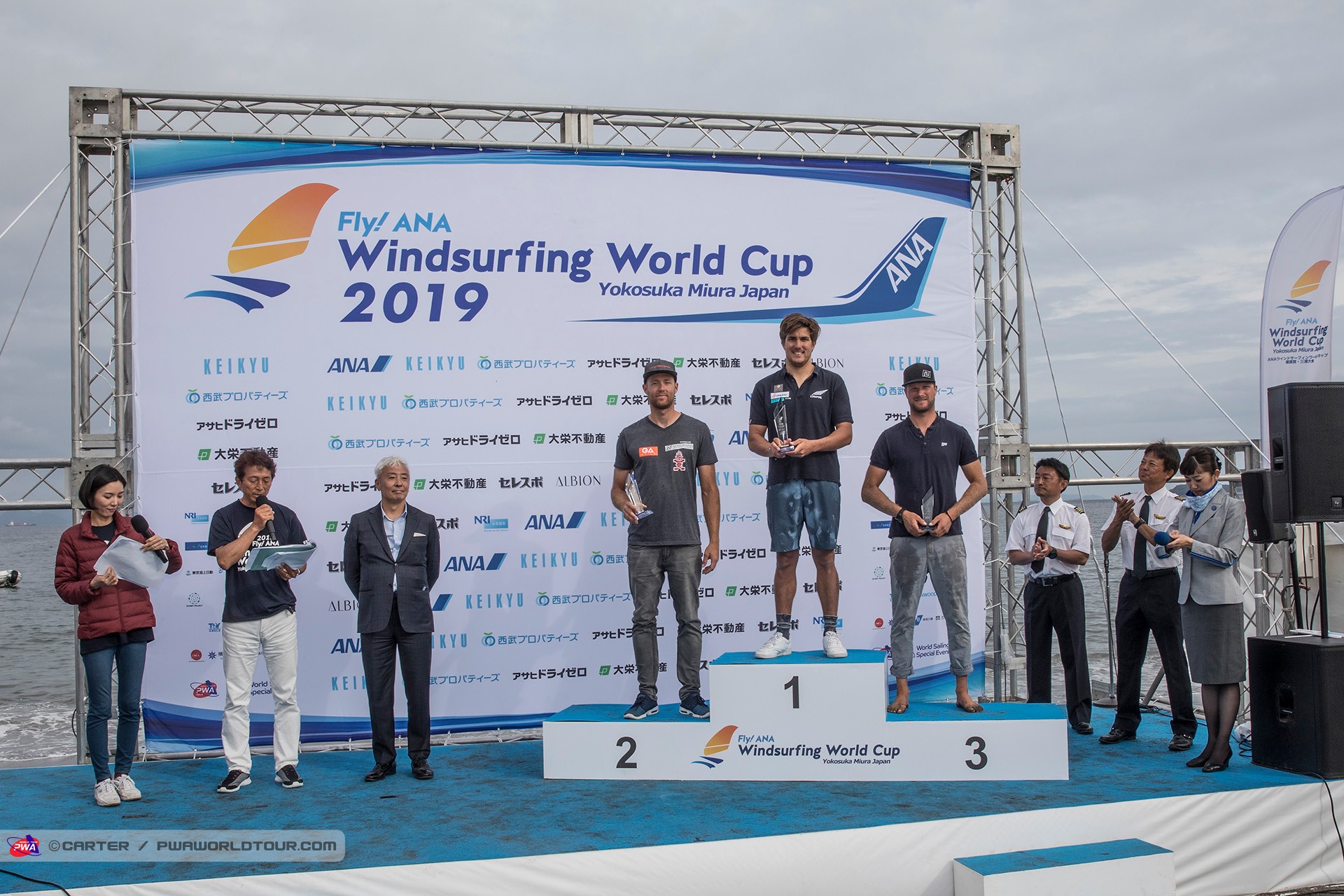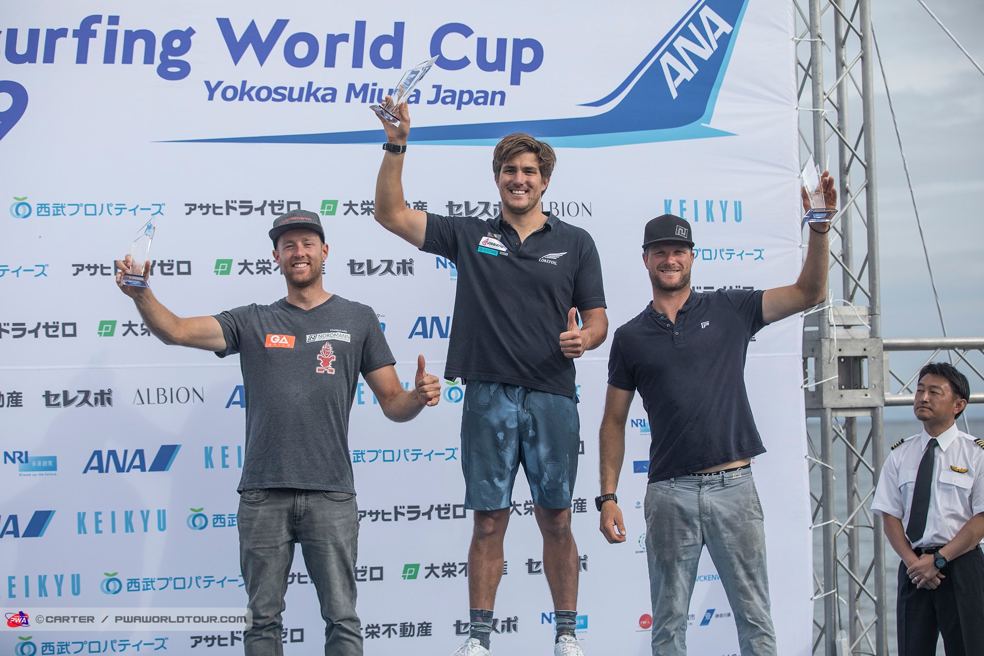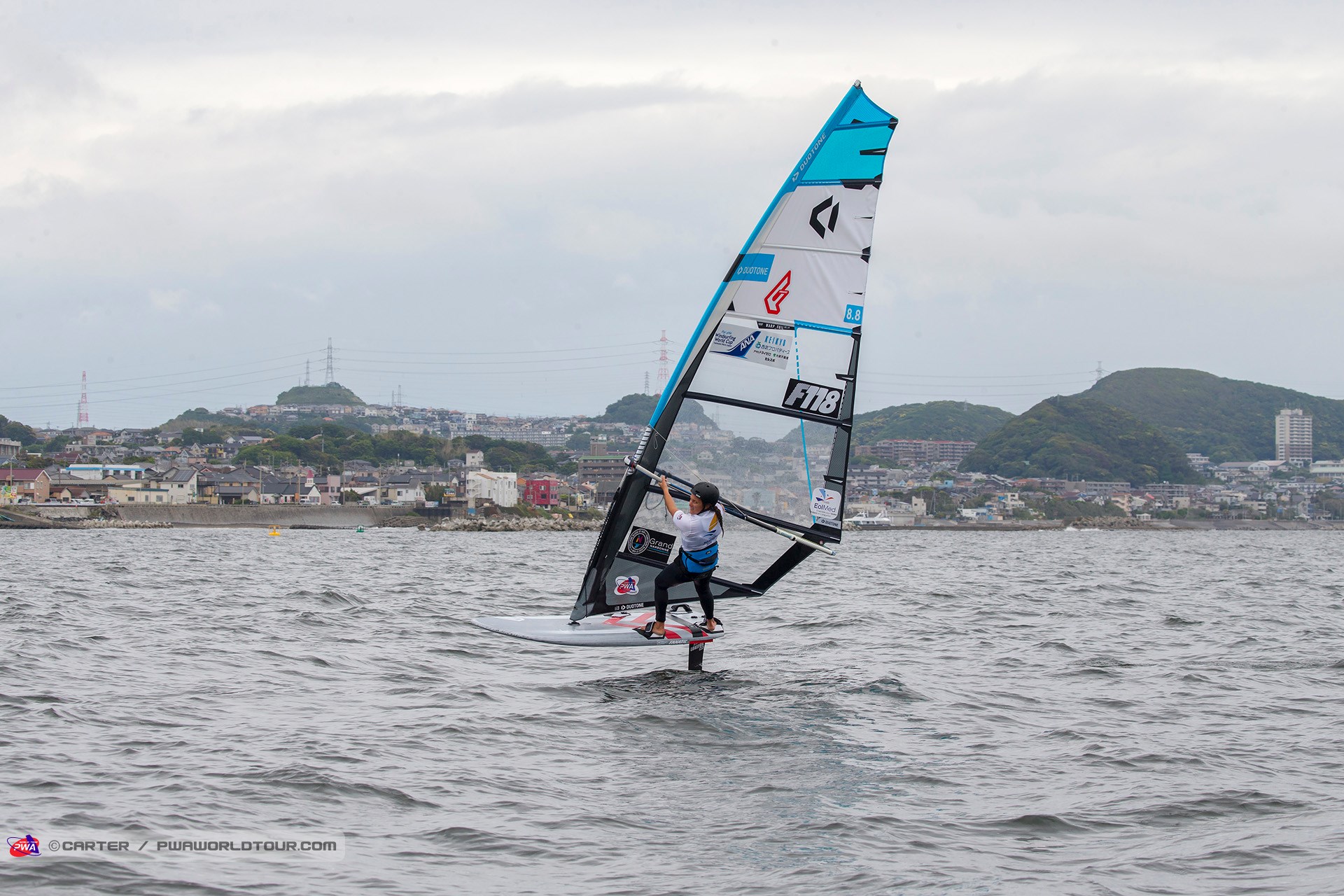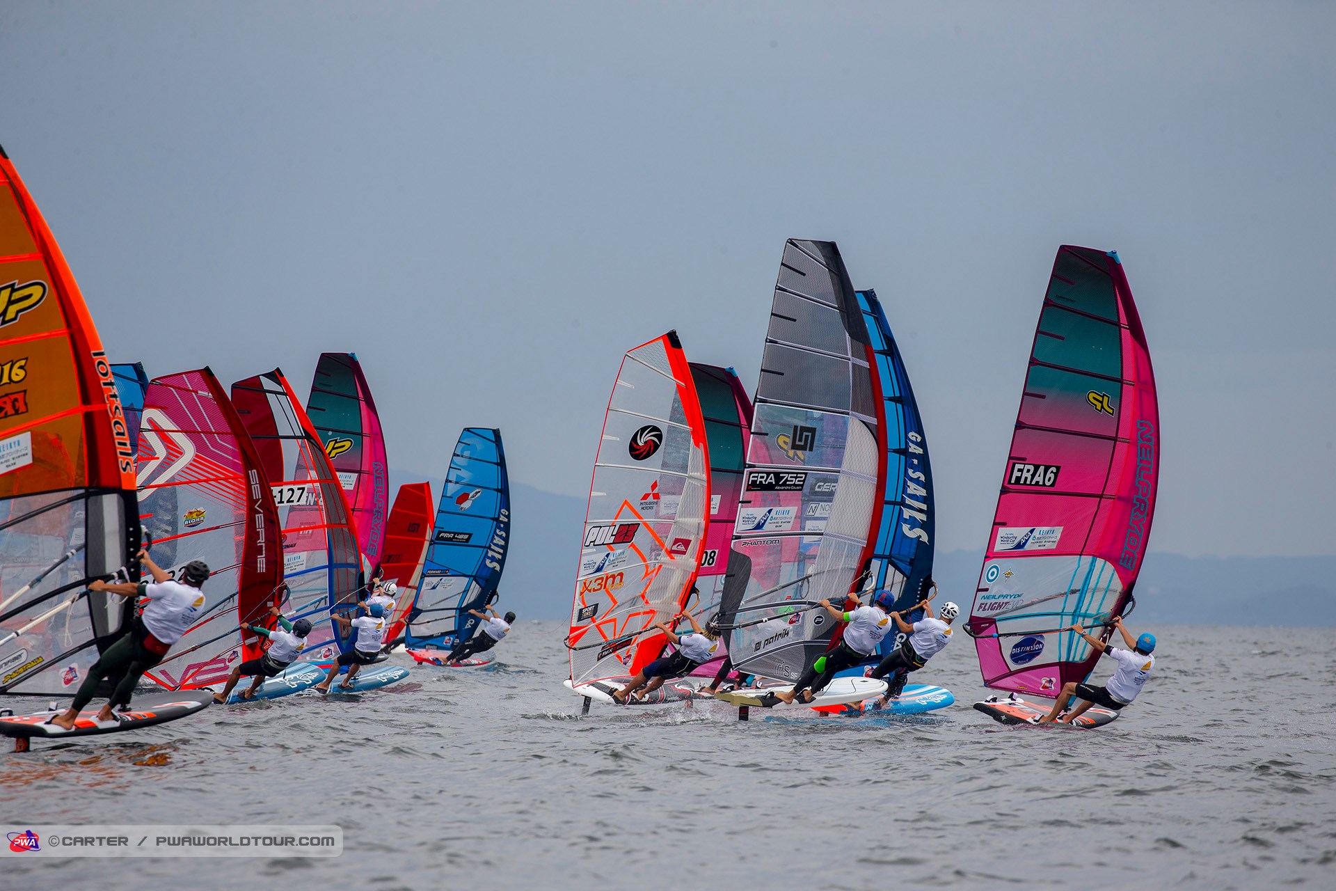 The 2019 Fly! ANA Yokosuka PWA World Cup saw 3 eliminations of Foiling for the Men and 7 eliminations for the women completed in 3-11 knots of wind, which meant that well-timed starts and solid race tactics were needed to succeed, while any mistakes were severely punished. Ultimately, Delphine Cousin Questel (Starboard / S2Maui / Starboard Foil) and Pierre Mortefon (Fanatic / Duotone / LOKEFOIL) maintain their perfect starts to the season after following up their respective victories in France by securing the top spots on the podium in Japan – meaning they both lead the Men’s & Women’s Foil & Slalom PWA World Tours.