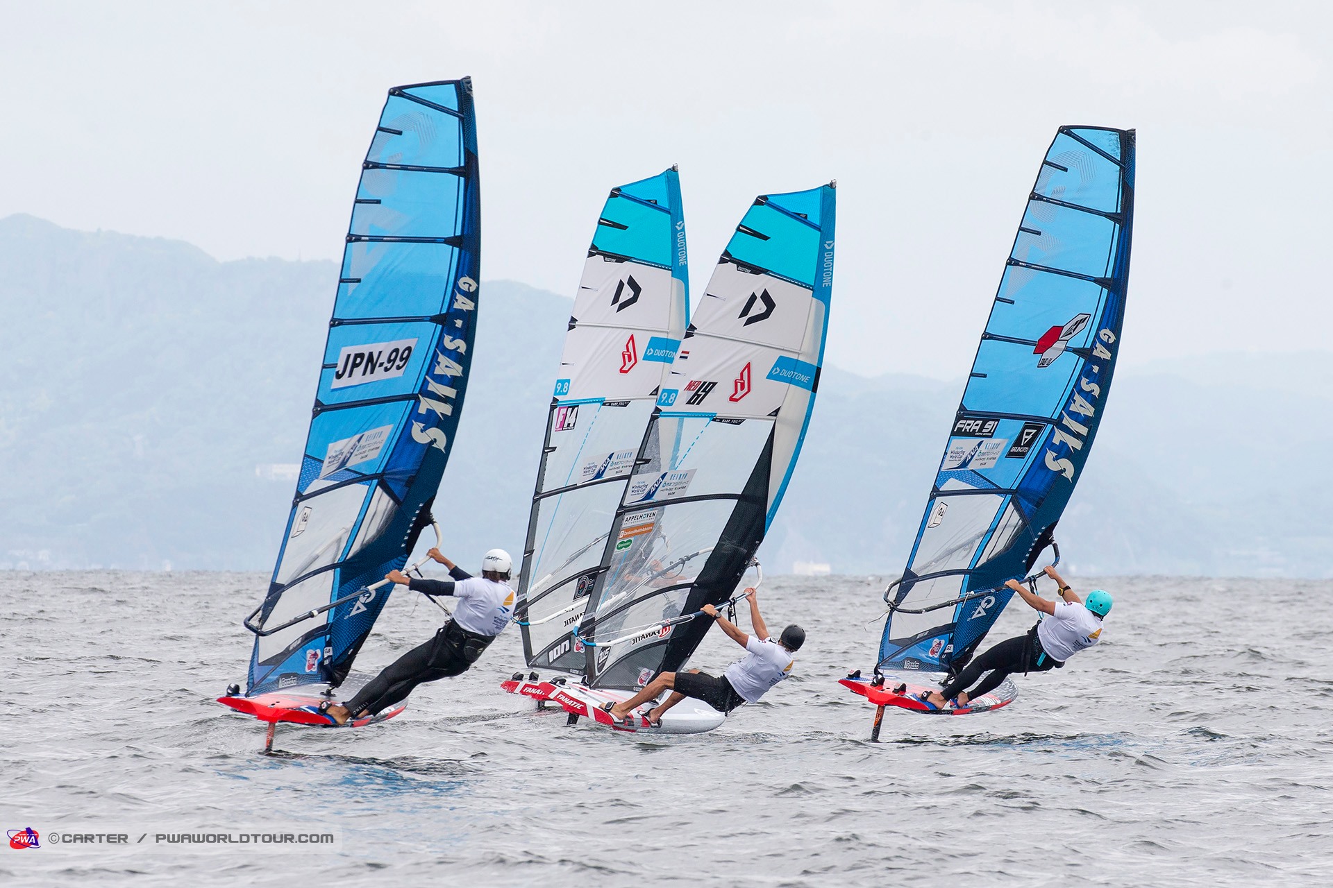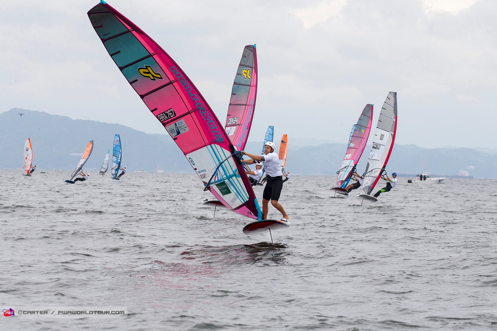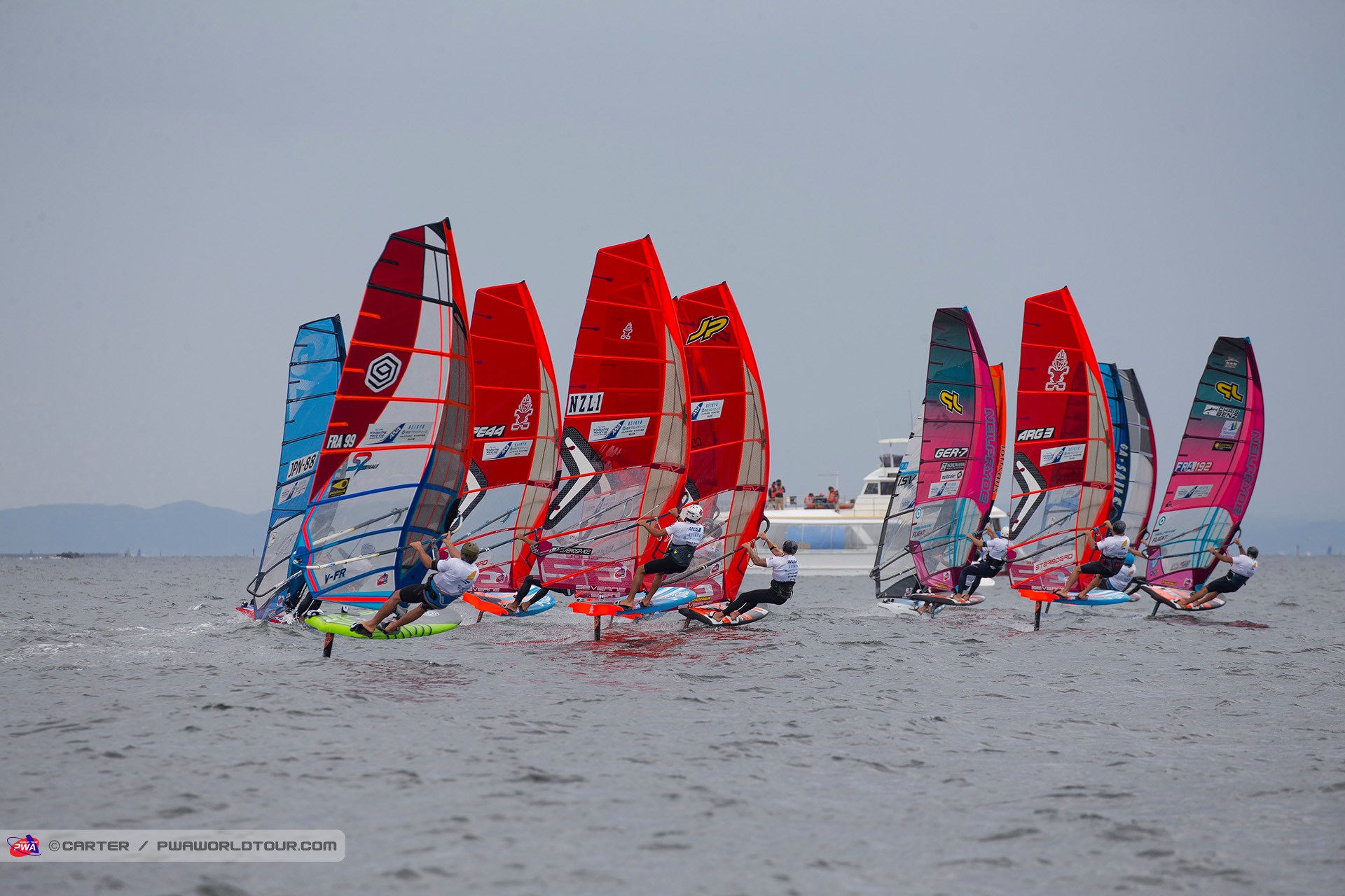 The 2019 Fly! ANA Yokosuka PWA World Cup saw 3 eliminations of Foiling for the Men and 7 eliminations for the women completed in 3-11 knots of wind, which meant that well-timed starts and solid race tactics were needed to succeed, while any mistakes were severely punished. Ultimately, Delphine Cousin Questel (Starboard / S2Maui / Starboard Foil) and Pierre Mortefon (Fanatic / Duotone / LOKEFOIL) maintain their perfect starts to the season after following up their respective victories in France by securing the top spots on the podium in Japan – meaning they both lead the Men’s & Women’s Foil & Slalom PWA World Tours.