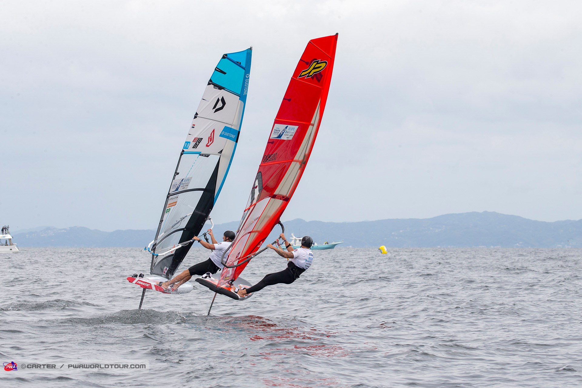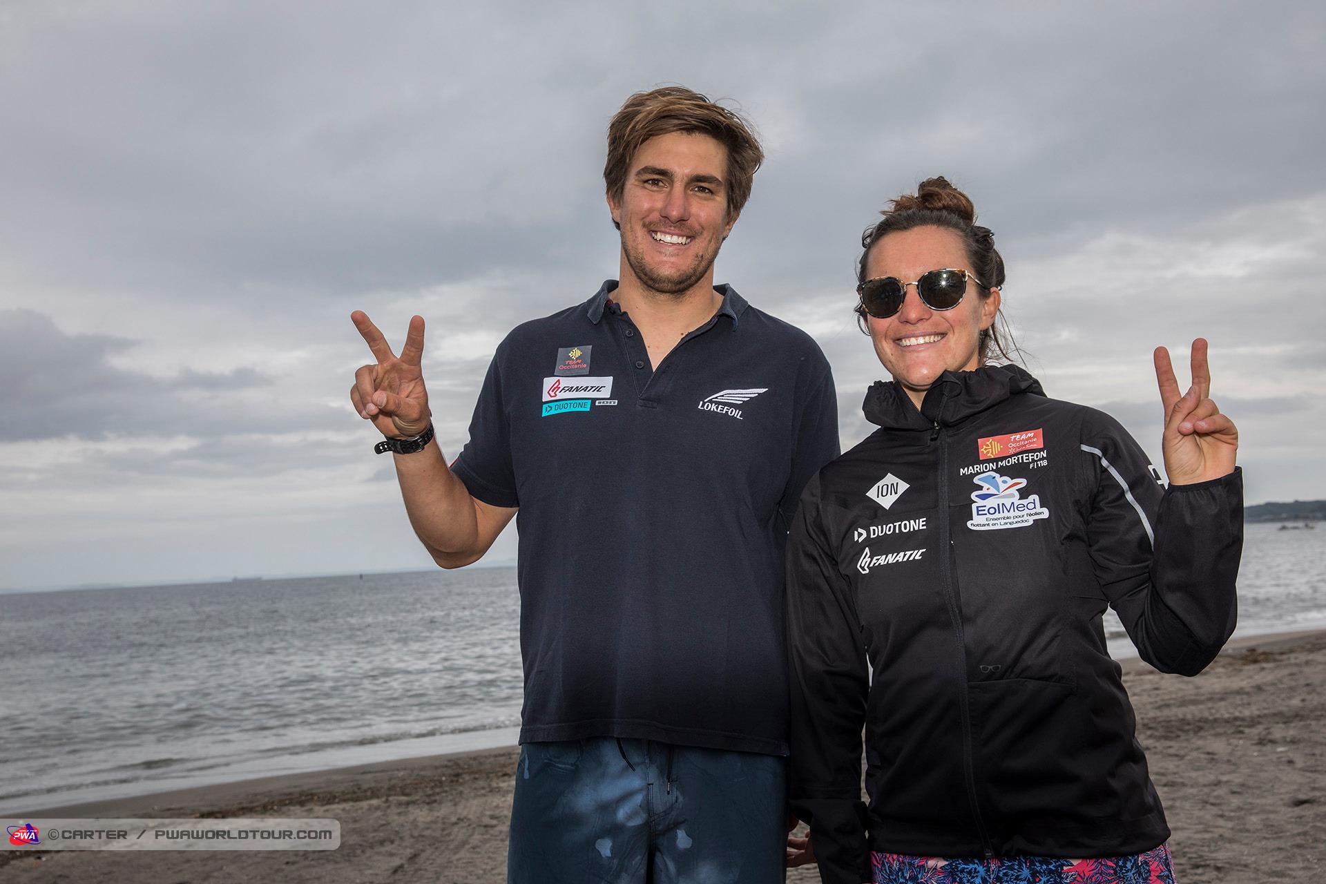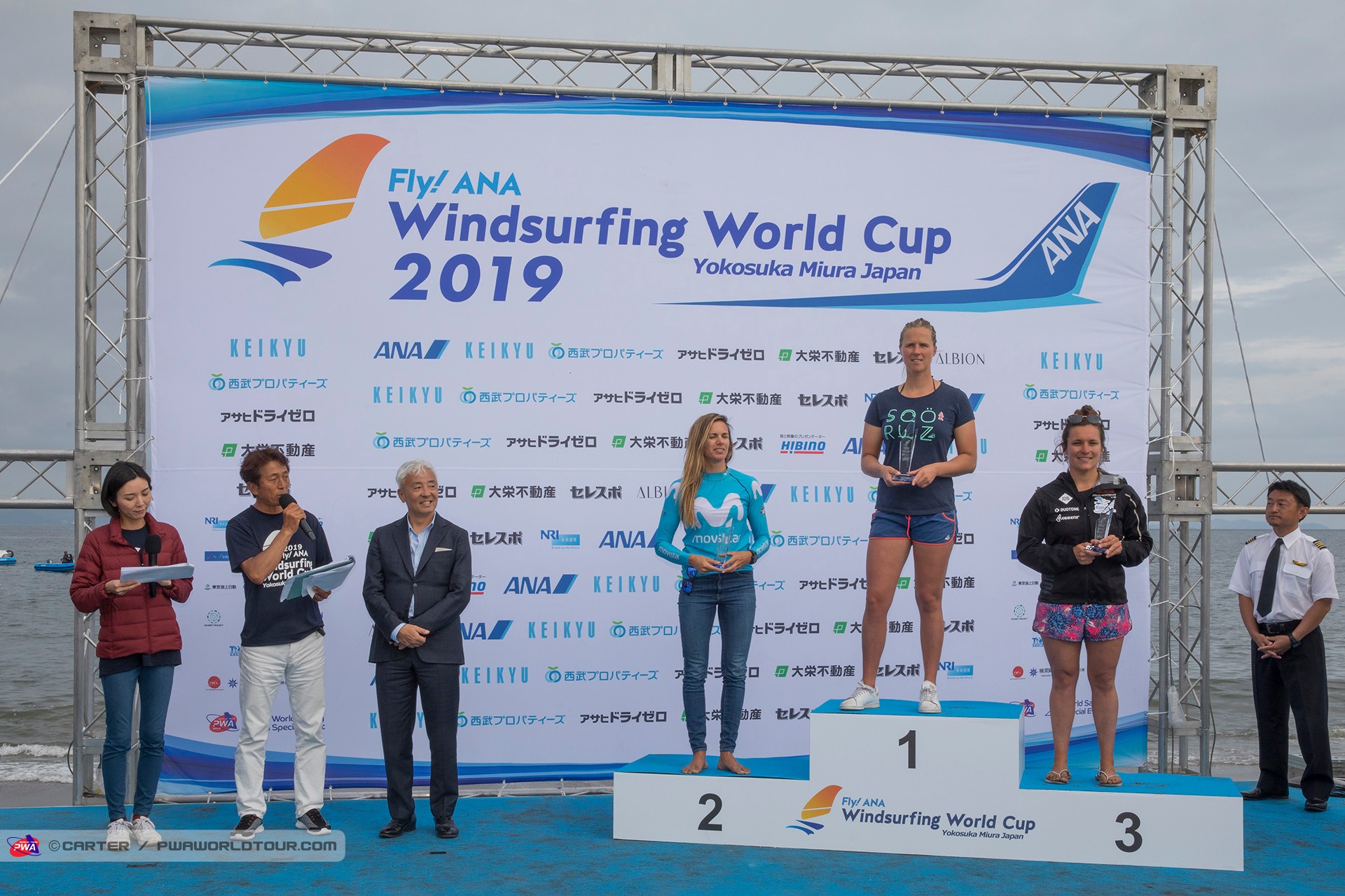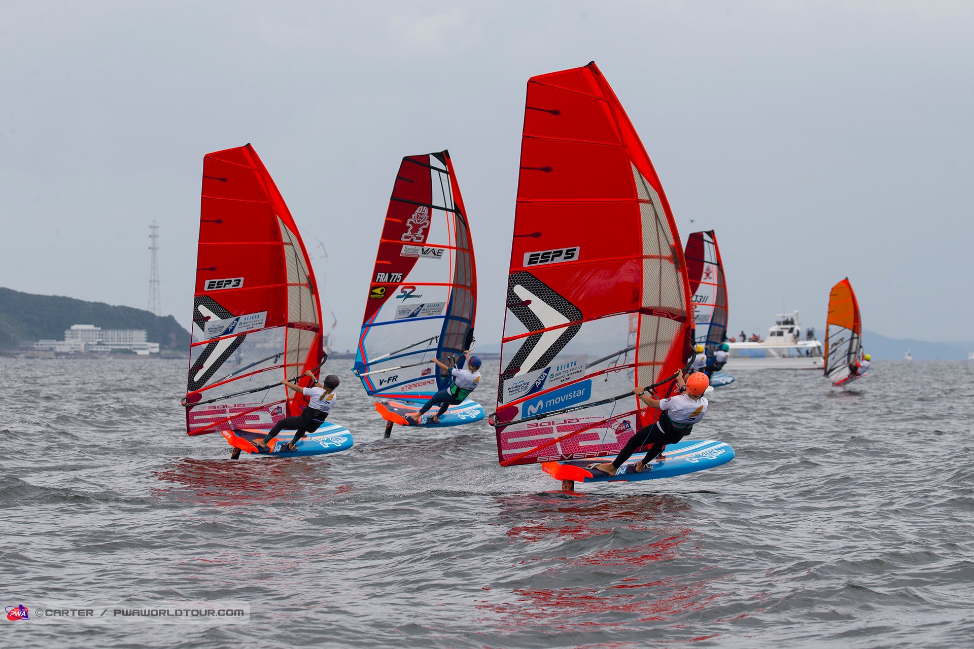 The 2019 Fly! ANA Yokosuka PWA World Cup saw 3 eliminations of Foiling for the Men and 7 eliminations for the women completed in 3-11 knots of wind, which meant that well-timed starts and solid race tactics were needed to succeed, while any mistakes were severely punished. Ultimately, Delphine Cousin Questel (Starboard / S2Maui / Starboard Foil) and Pierre Mortefon (Fanatic / Duotone / LOKEFOIL) maintain their perfect starts to the season after following up their respective victories in France by securing the top spots on the podium in Japan – meaning they both lead the Men’s & Women’s Foil & Slalom PWA World Tours.